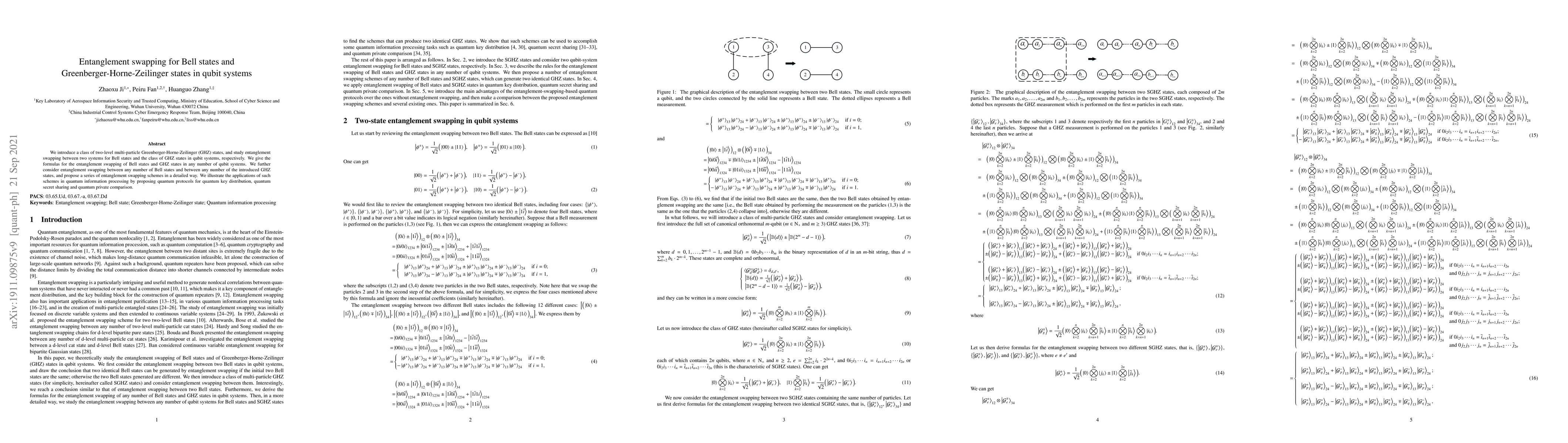 This paper explores entanglement swapping for Bell states and a new class of Greenberger-Horne-Zeilinger (GHZ) states in qubit systems, providing formulas for swapping and proposing detailed protocols for quantum key distribution, secret sharing, and private comparison. The study also includes schemes for swapping between multiple Bell and GHZ states.