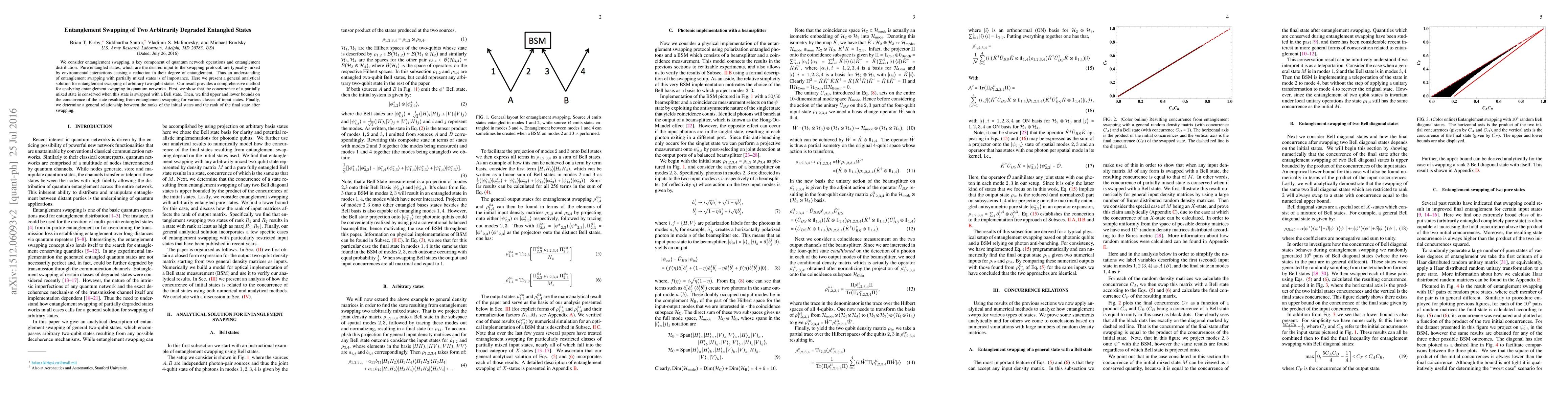 This paper presents an analytical solution for entanglement swapping involving two arbitrarily degraded entangled states, showing that the concurrence of a mixed state is conserved when swapped with a Bell state. It provides upper and lower bounds on the concurrence of the resulting state and establishes a relationship between the ranks of the initial states and the final state after swapping.
