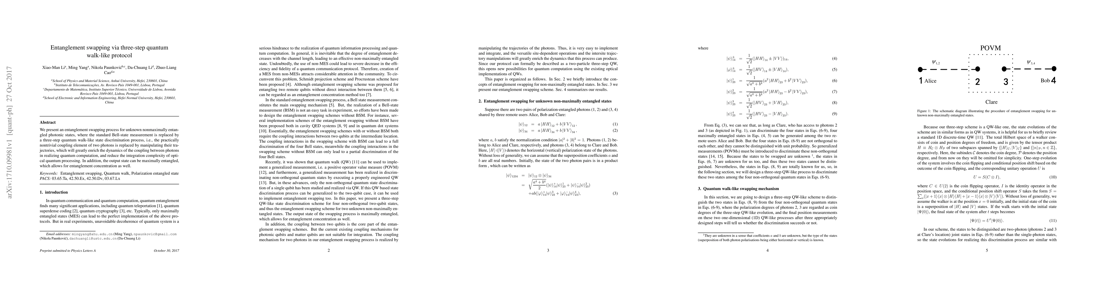 Researchers develop a new method for entanglement swapping using a three-step quantum walk-like protocol that replaces traditional Bell-state measurement with trajectory manipulation, potentially simplifying optical quantum processing.
