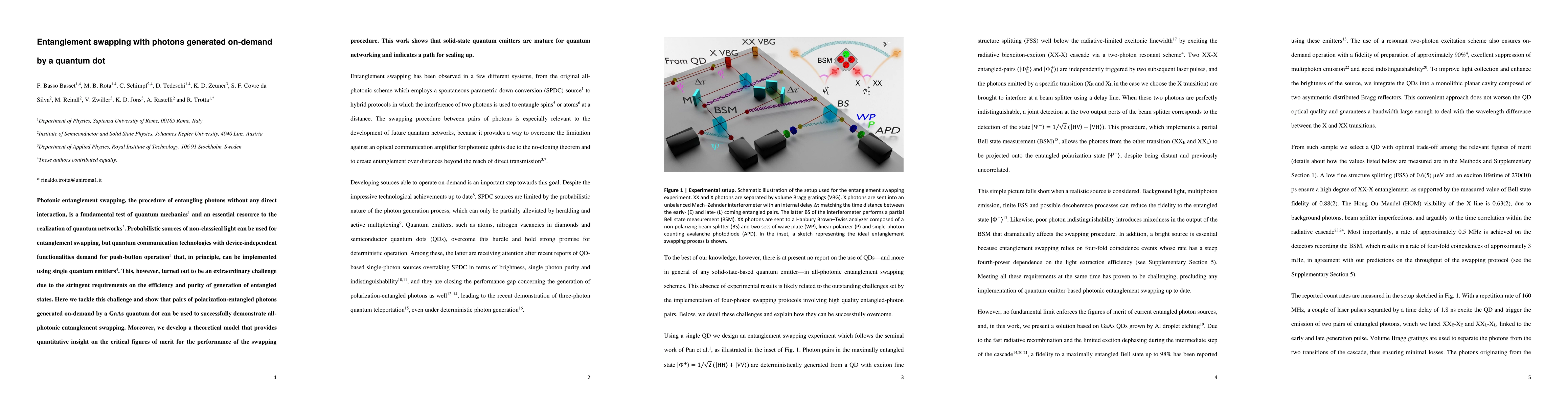 This paper demonstrates successful entanglement swapping using pairs of polarization-entangled photons generated on-demand by a GaAs quantum dot, addressing the challenge of efficiency and purity in quantum communication. The study also provides a theoretical model for evaluating the performance of the swapping procedure, indicating the readiness of solid-state quantum emitters for quantum networking.