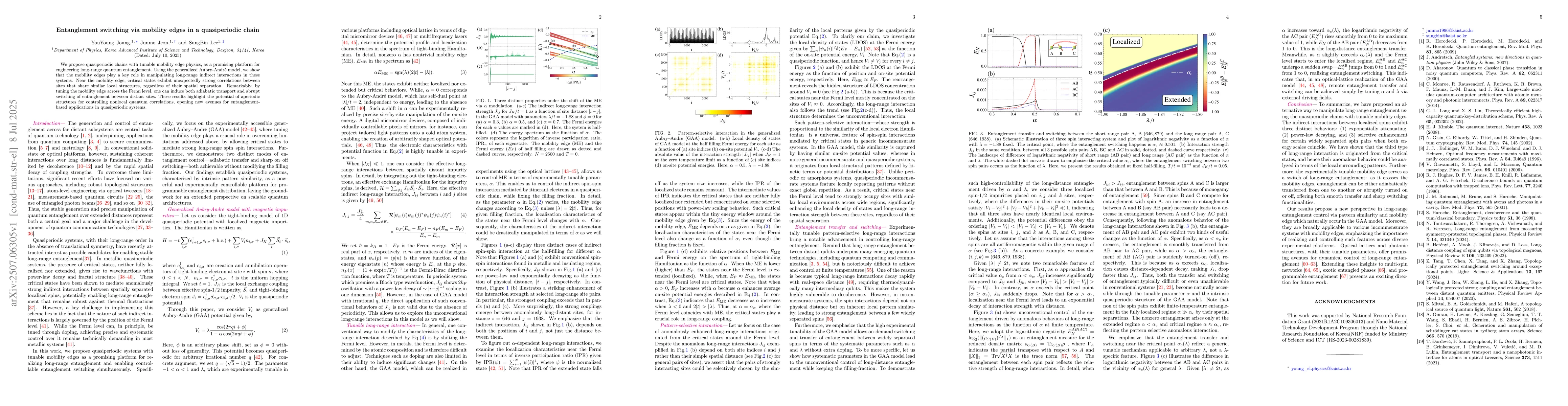We propose quasiperiodic chains with tunable mobility edge physics, as a promising platform for engineering long-range quantum entanglement. Using the generalized Aubry-Andr\'e model, we show that the mobility edges play a key role in manipulating long-range indirect interactions in these systems. Near the mobility edge, critical states exhibit unexpectedly strong correlations between sites that share similar local structures, regardless of their spatial separation. Remarkably, by tuning the mobility edge across the Fermi level, one can induce both adiabatic transport and abrupt switching of entanglement between distant sites. These results highlight the potential of aperiodic structures for controlling nonlocal quantum correlations, opening new avenues for entanglement-based applications in quasiperiodic systems.