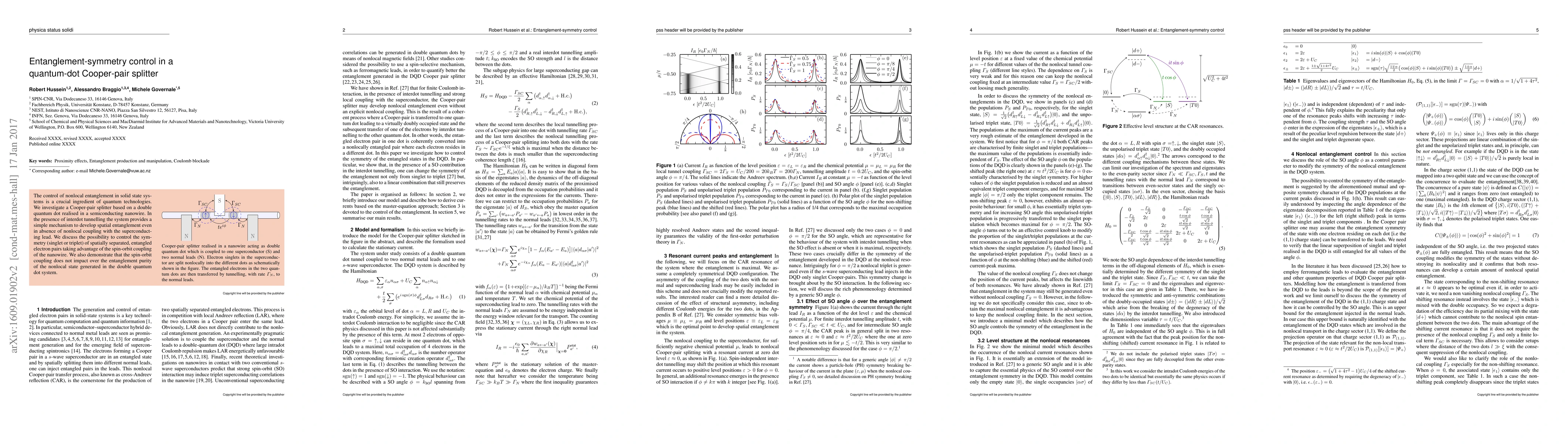 This paper explores a Cooper-pair splitter in a semiconducting nanowire double quantum dot, demonstrating a method to generate spatial entanglement without nonlocal coupling. It investigates controlling the symmetry of entangled electron pairs via spin-orbit coupling, showing that this coupling does not affect the entanglement purity.
