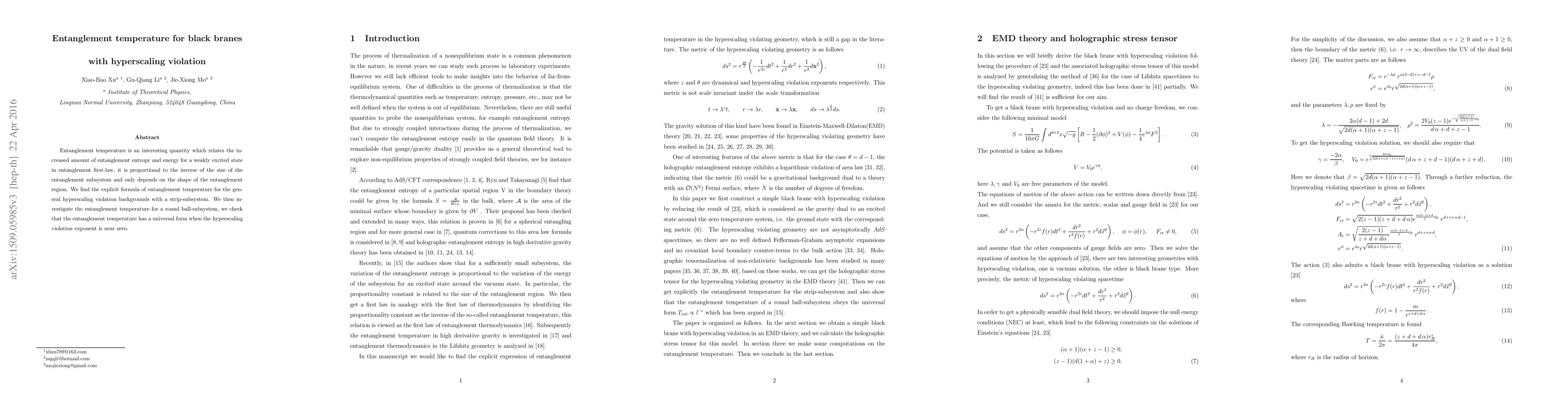Entanglement temperature is an interesting quantity which relates the increased amount of entanglement entropy and energy for a weakly excited state in entanglement first-law, it is proportional to the inverse of the size of the entanglement subsystem and only depends on the shape of the entanglement region. We find the explicit formula of entanglement temperature for the general hyperscaling violation backgrounds with a strip-subsystem. We then investigate the entanglement temperature for a round ball-subsystem, we check that the entanglement temperature have a universal form when the hyperscaling violation exponent is near zero.