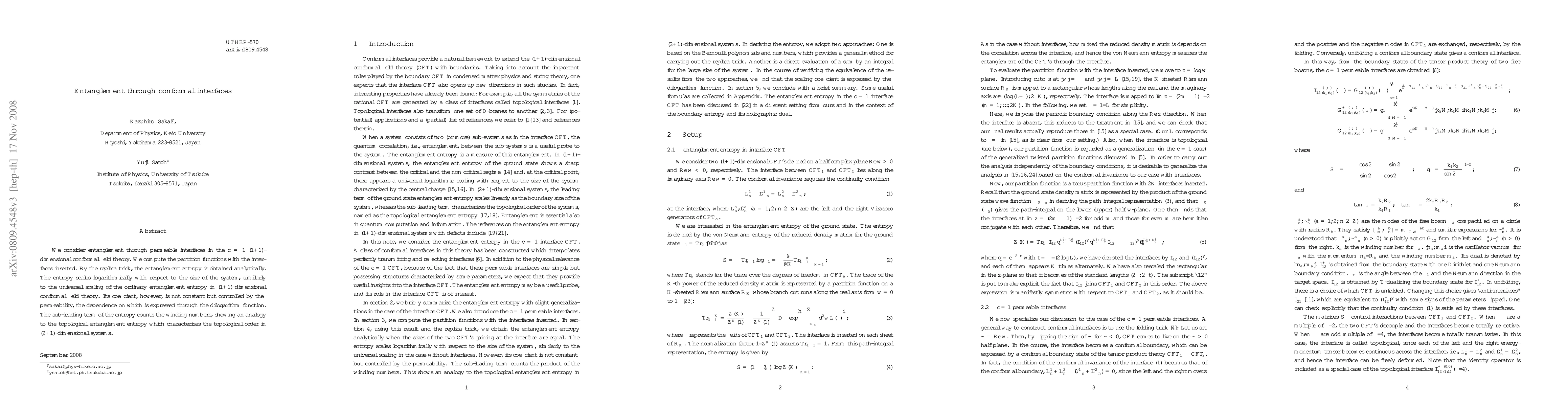 This paper investigates entanglement entropy through permeable interfaces in a (1+1)-dimensional conformal field theory, finding that the entropy scales logarithmically with system size. The coefficient of this scaling depends on the interface's permeability, expressed via the dilogarithm function, and includes a sub-leading term related to winding numbers, analogous to topological entanglement entropy.