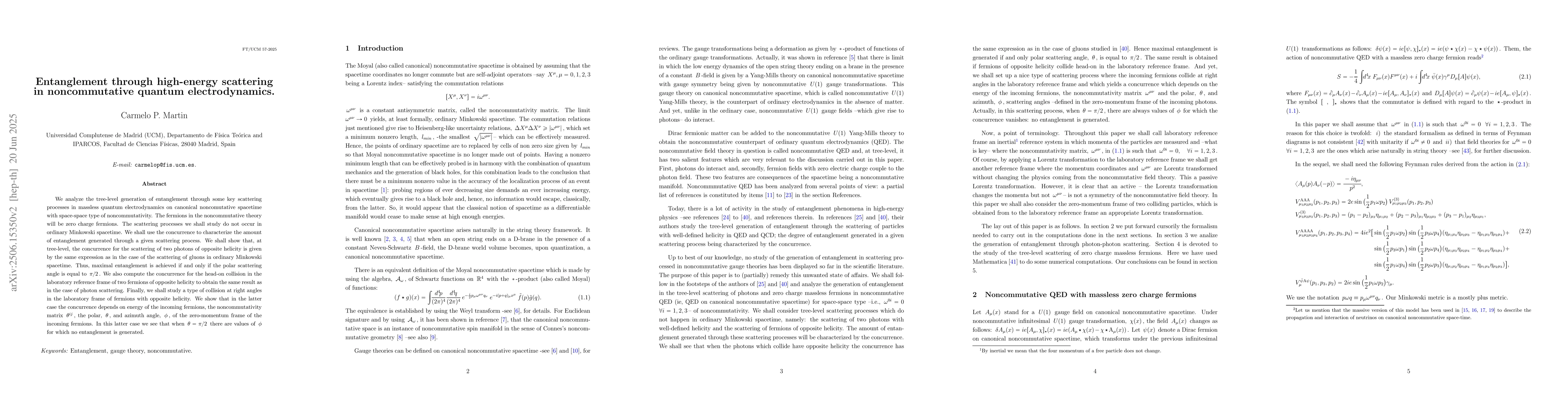 The paper introduces a detailed analysis of entanglement generation through specific scattering processes in noncommutative quantum electrodynamics, using the concurrence as a measure of entanglement.