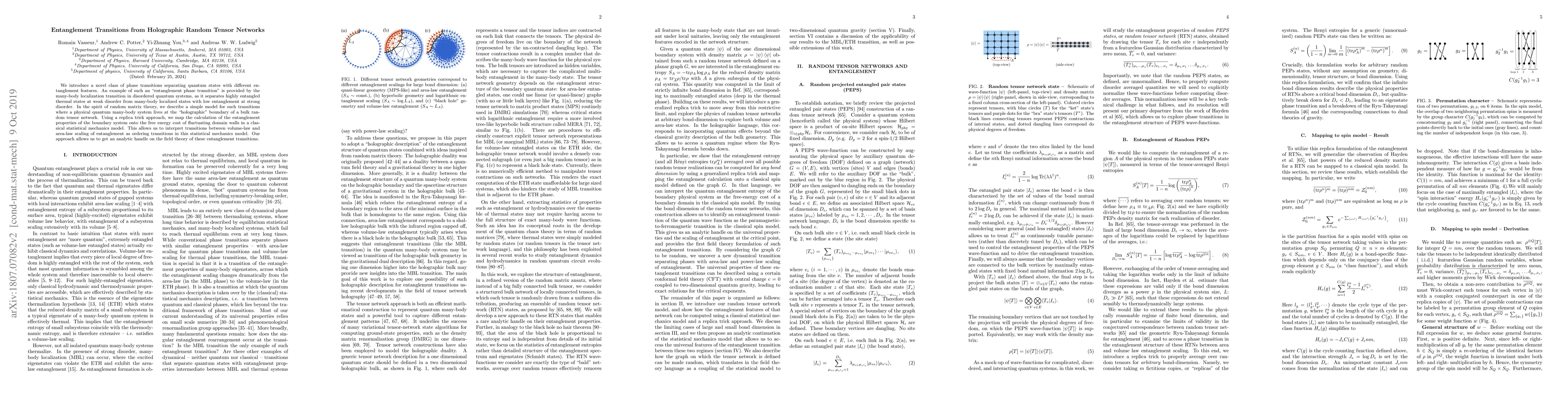 The paper introduces a method to study entanglement transitions using holographic random tensor networks and a replica trick, linking entanglement properties to classical statistical mechanics models.