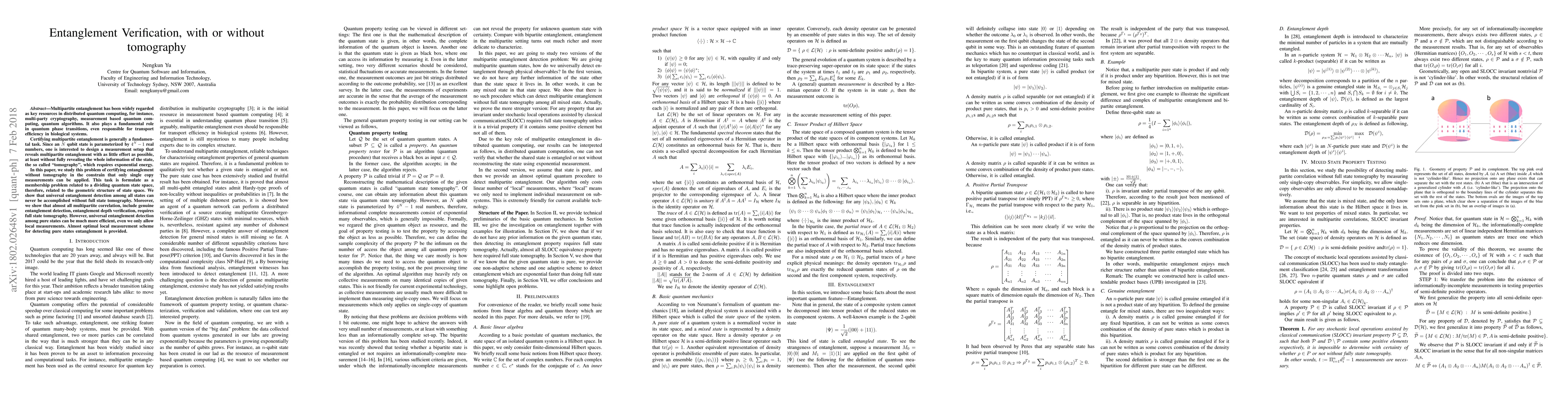The paper presents a detailed analysis of entanglement verification without full state tomography, proving that many multipartite correlation properties necessitate complete state information and providing an efficient local measurement scheme for pure states.