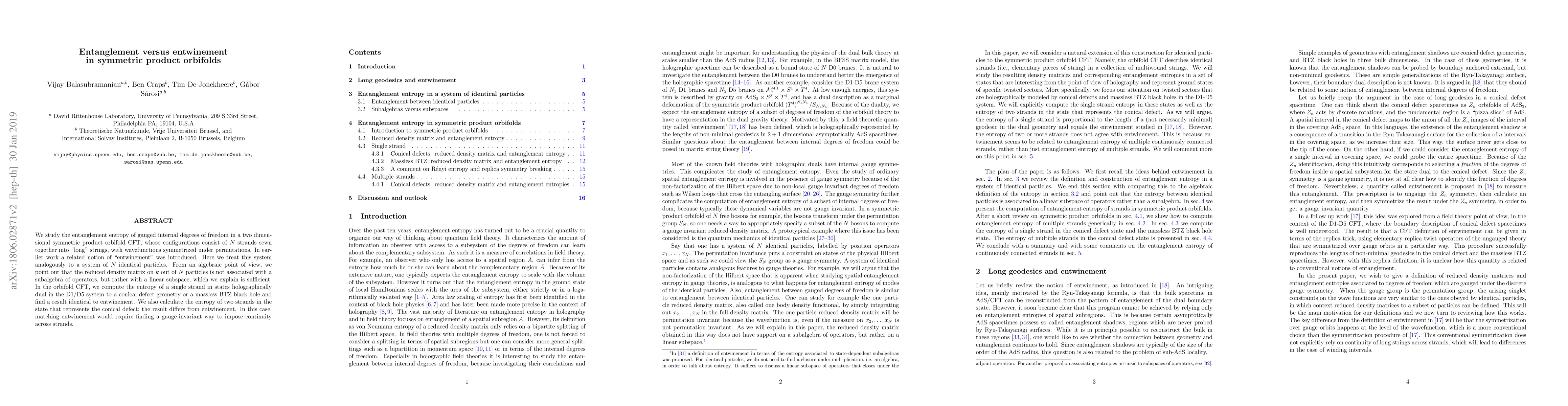 Researchers study entanglement entropy in a 2D symmetric product orbifold CFT, finding that single-strand states have identical entropy to 'entwinement', while two-strand states do not.
