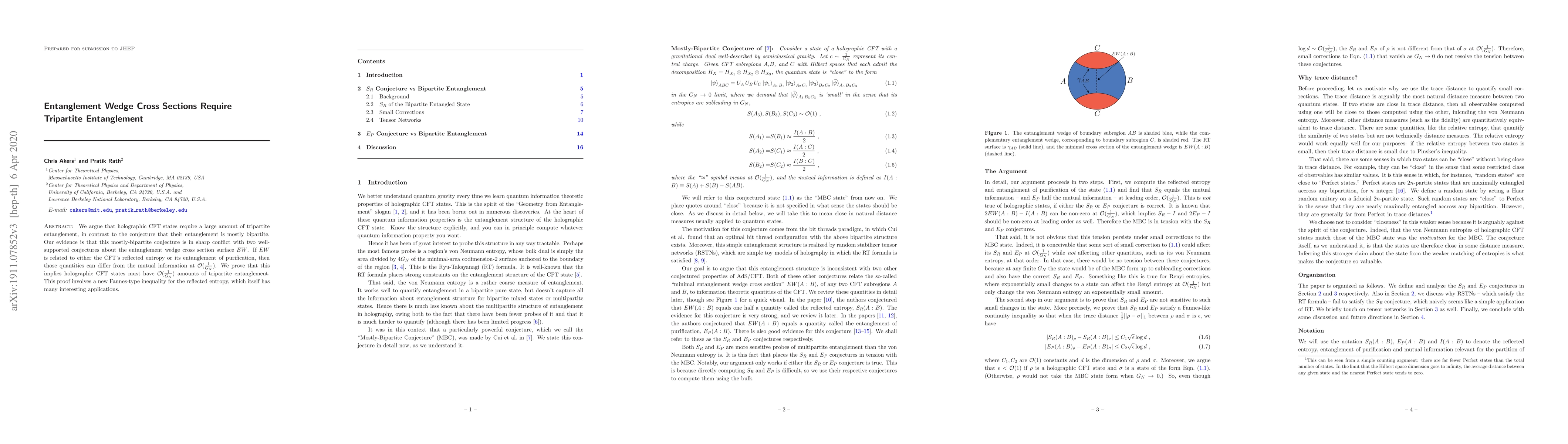 This paper argues that holographic conformal field theory (CFT) states necessitate significant tripartite entanglement, contrary to the conjecture that their entanglement is primarily bipartite. The authors demonstrate that the bipartite conjecture conflicts with established conjectures about the entanglement wedge cross section, necessitating $\mathcal{O}(\frac{1}{G_N})$ amounts of tripartite entanglement.
