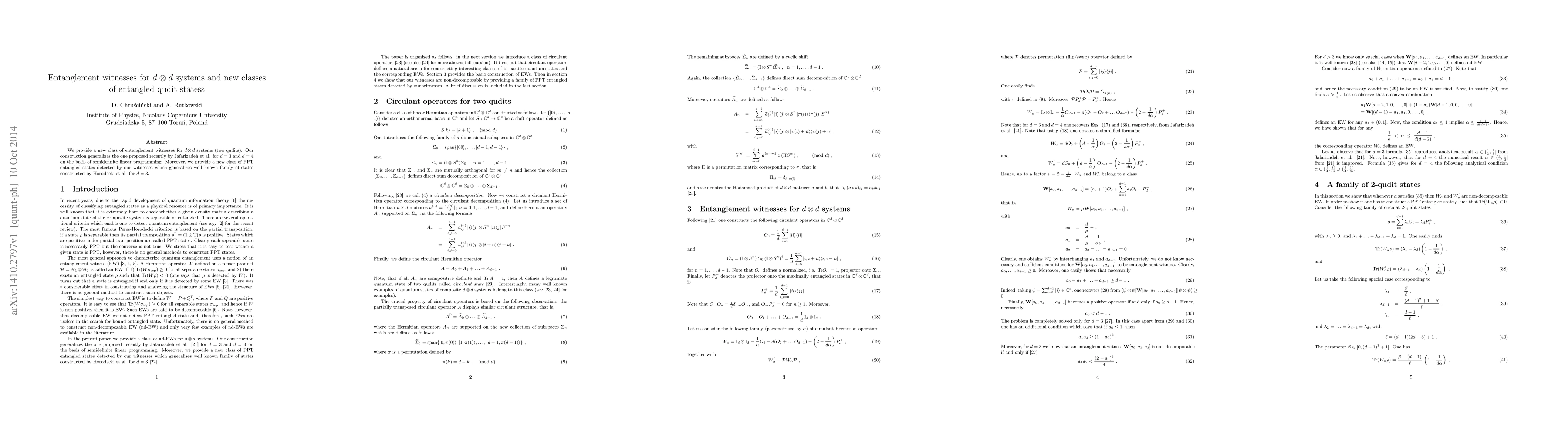 We provide a new class of entanglement witnesses for $d \ot d$ systems (two qudits). Our construction generalizes the one proposed recently by Jafarizadeh et al. for $d=3$ and $d=4$ on the basis of semidefinite linear programming. Moreover, we provide a new class of PPT entangled states detected by our witnesses which generalizes well known family of states constructed by Horodecki et al. for $d=3$.