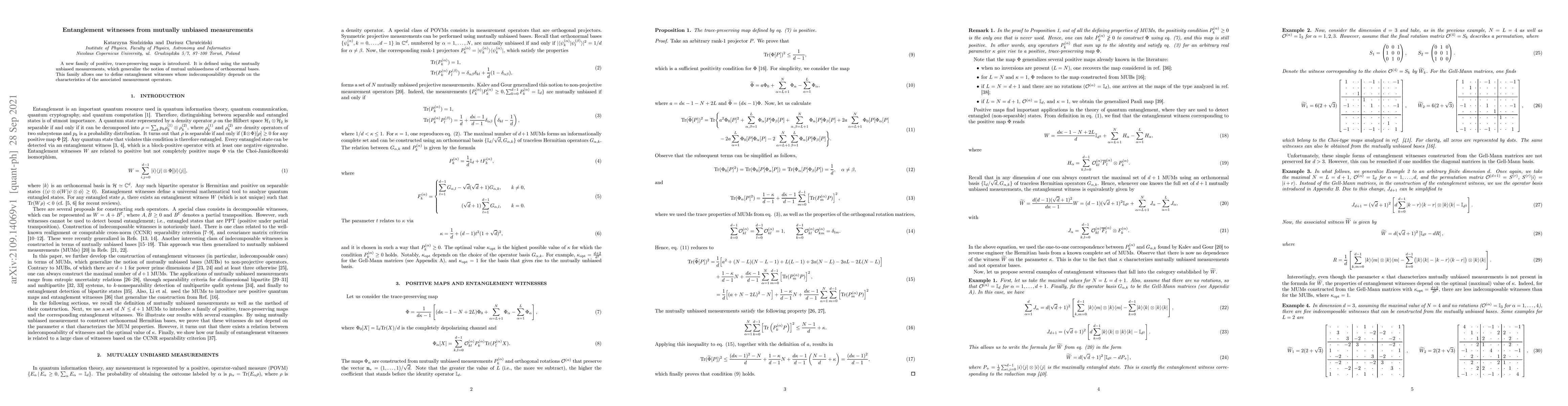 This paper introduces a new family of positive, trace-preserving maps based on mutually unbiased measurements, generalizing the concept of mutual unbiasedness beyond orthonormal bases, and uses these maps to define entanglement witnesses tied to the properties of the measurement operators.
