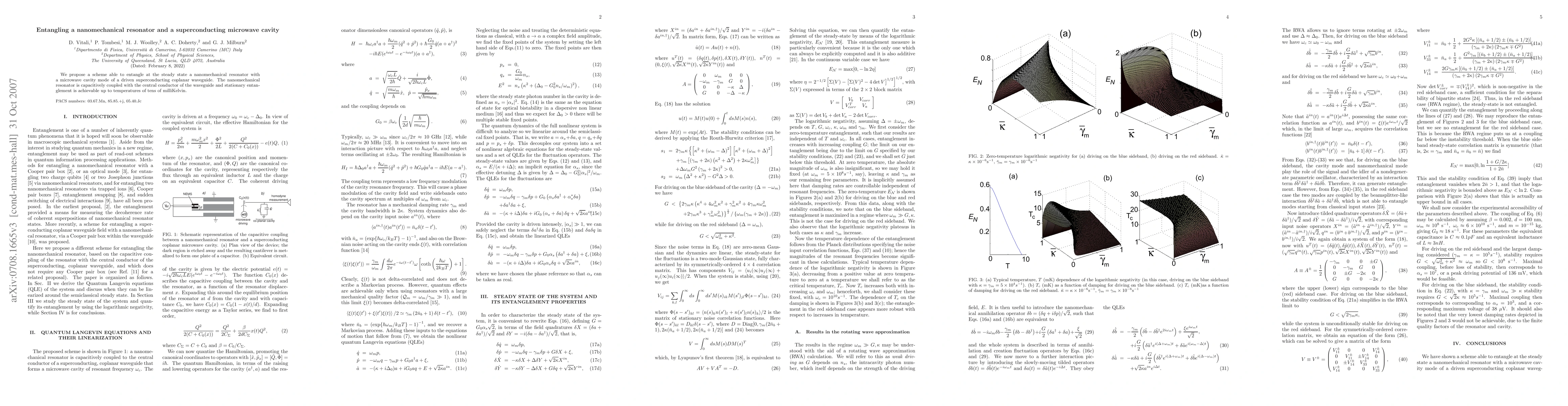 This research proposes a method to achieve steady-state entanglement between a nanomechanical resonator and a microwave cavity mode in a driven superconducting coplanar waveguide, with coupling via the central conductor, maintaining entanglement up to tens of milliKelvin.