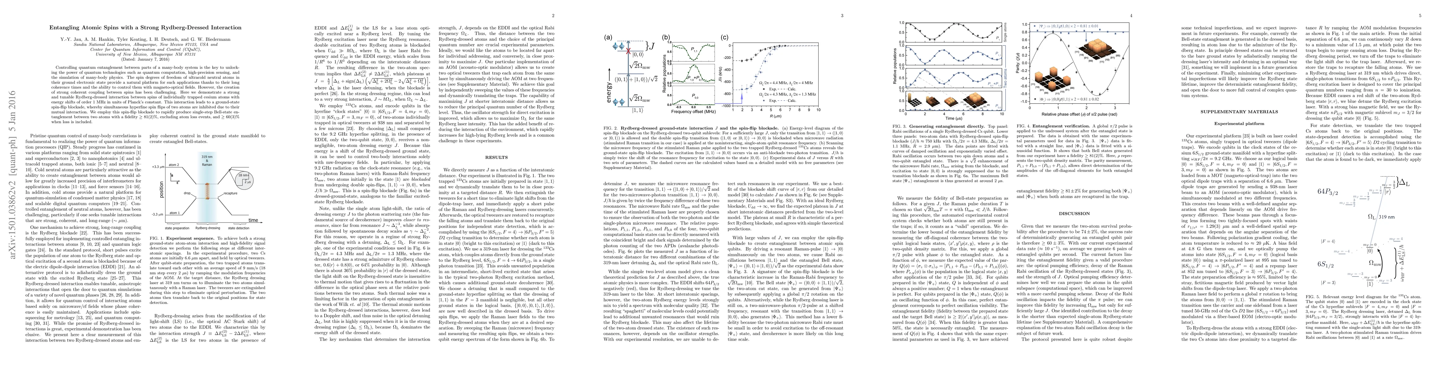 Researchers have developed a method to create strong coherent coupling between spins of ultracold cesium atoms using Rydberg-dressed ground-state blockade. This results in a tunable interaction energy of ~1 MHz, enabling direct production of Bell-state entanglement between two atoms with fidelities of ≥81(2)% (excluding atom loss) and ≥60(3)% (including atom loss). This breakthrough is crucial for quantum information processing applications.