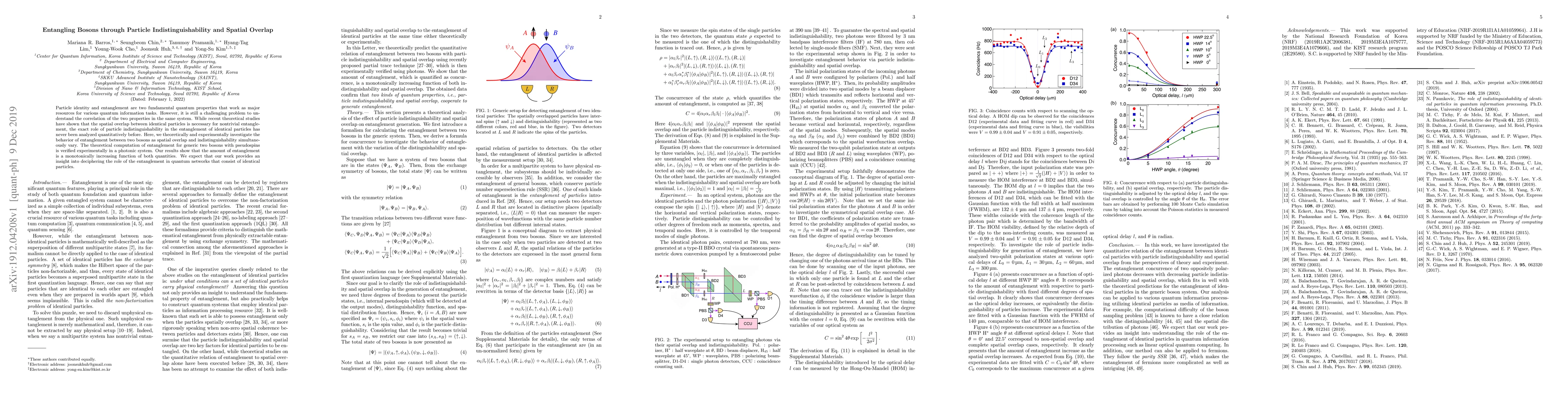 This paper investigates the entanglement between two bosons by examining the effects of particle indistinguishability and spatial overlap. Both theoretical and experimental results show that entanglement increases monotonically with both factors, offering insights into the role of entanglement in quantum networks.