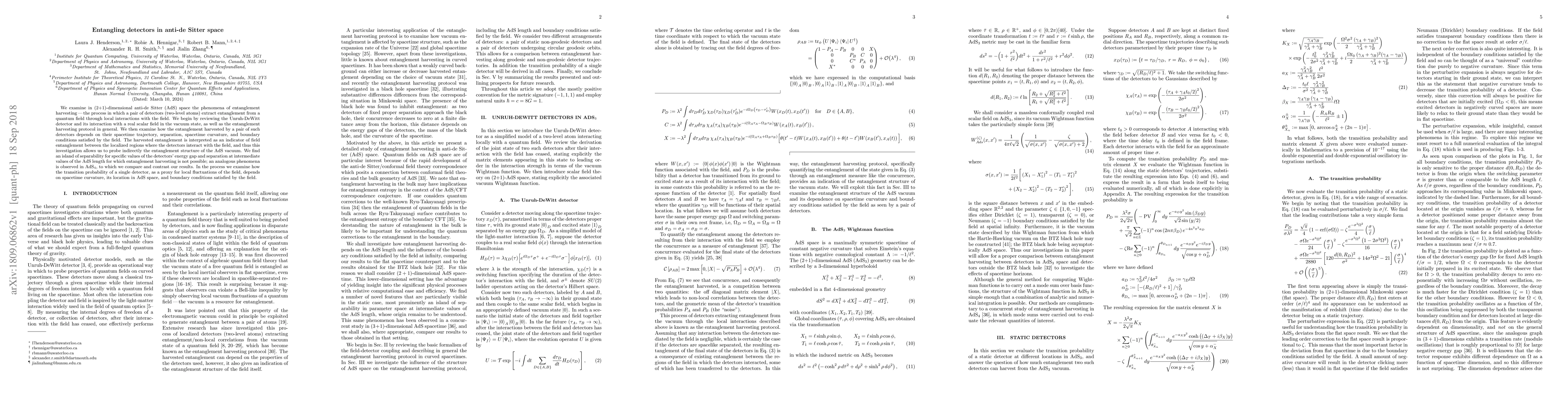 We examine in $(2+1)$-dimensional anti-de Sitter (AdS) space the phenomena of entanglement harvesting - the process in which a pair of detectors (two-level atoms) extract entanglement from a quantum field through local interactions with the field. We begin by reviewing the Unruh-DeWitt detector and its interaction with a real scalar field in the vacuum state, as well as the entanglement harvesting protocol in general. We then examine how the entanglement harvested by a pair of such detectors depends on their spacetime trajectory, separation, spacetime curvature, and boundary conditions satisfied by the field. The harvested entanglement is interpreted as an indicator of field entanglement between the localized regions where the detectors interact with the field, and thus this investigation allows us to probe indirectly the entanglement structure of the AdS vacuum. We find an island of separability for specific values of the detectors' energy gap and separation at intermediate values of the AdS length for which entanglement harvesting is not possible; an analogous phenomena is observed in AdS$_4$, to which we compare and contrast our results. In the process we examine how the transition probability of a single detector, as a proxy for local fluctuations of the field, depends on spacetime curvature, its location in AdS space, and boundary conditions satisfied by the field.