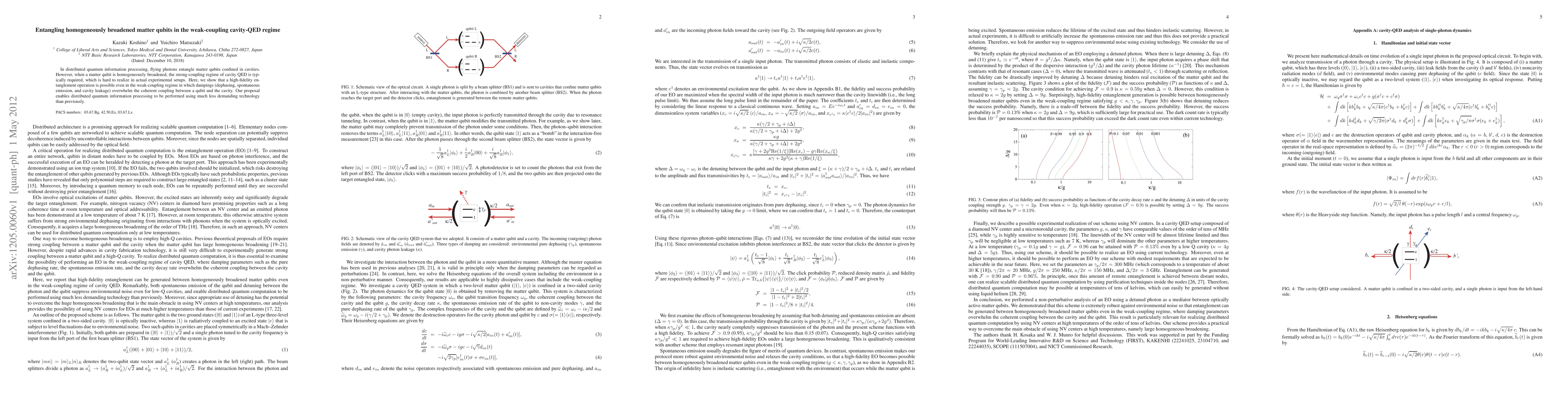 This paper proposes a method for entangling homogeneously broadened matter qubits in the weak-coupling regime of cavity QED, demonstrating high-fidelity entanglement without requiring strong coupling, which is more feasible for practical quantum information processing.