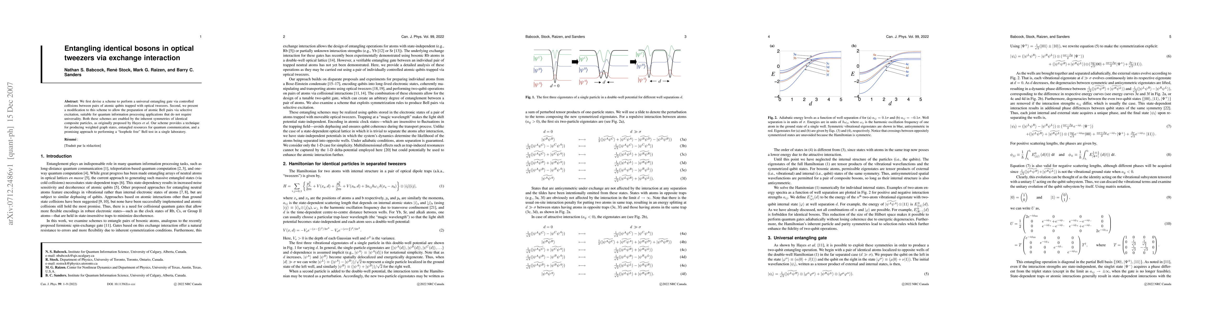 This paper proposes a method for entangling identical bosons using controlled collisions in optical tweezers, enabling universal entangling gates and selective excitation for preparing atomic Bell pairs. The approach leverages symmetries of identical particles to create entangled graph states and supports a loophole-free Bell test.