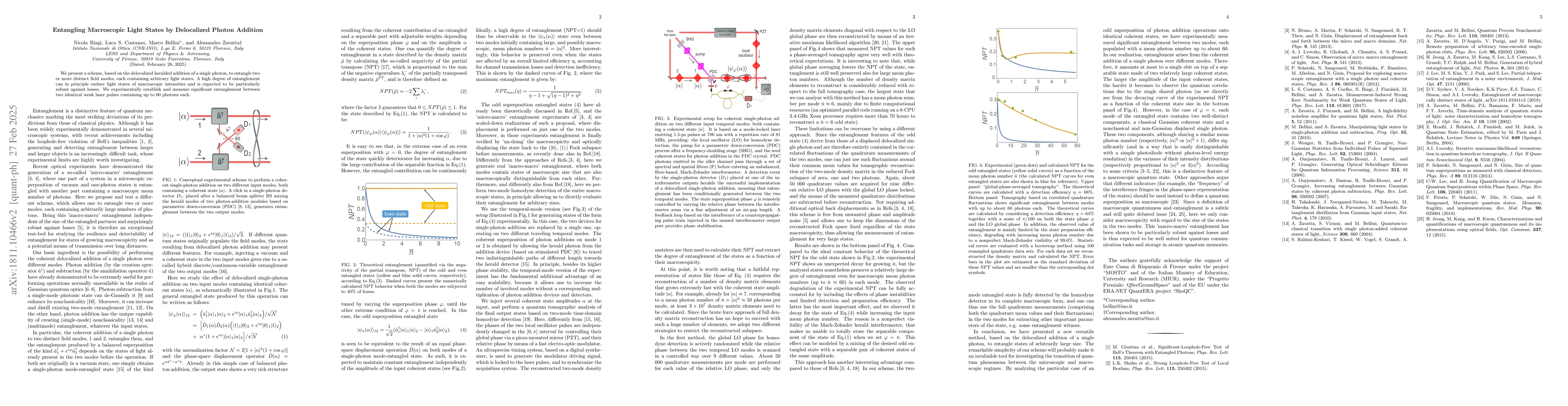 Researchers successfully created entanglement between macroscopic light states by adding a single photon to two modes containing identical coherent states. This discovery demonstrates a new method for preserving entanglement even in multimode systems.
