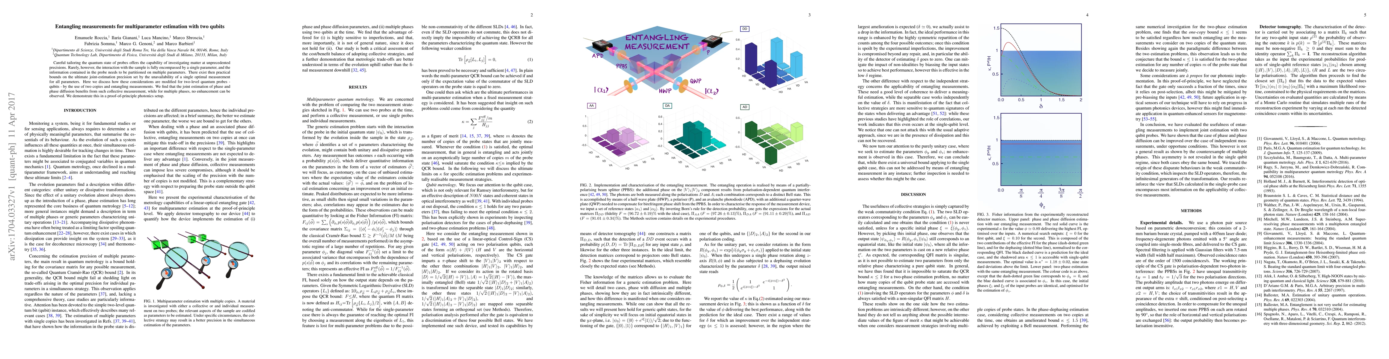 Careful tailoring the quantum state of probes offers the capability of investigating matter at unprecedented precisions. Rarely, however, the interaction with the sample is fully encompassed by a single parameter, and the information contained in the probe needs to be partitioned on multiple parameters. There exist then practical bounds on the ultimate joint-estimation precision set by the unavailability of a single optimal measurement for all parameters. Here we discuss how these considerations are modified for two-level quantum probes - qubits - by the use of two copies and entangling measurements. We find that the joint estimation of phase and phase diffusion benefits from such collective measurement, while for multiple phases, no enhancement can be observed. We demonstrate this in a proof-of-principle photonics setup.