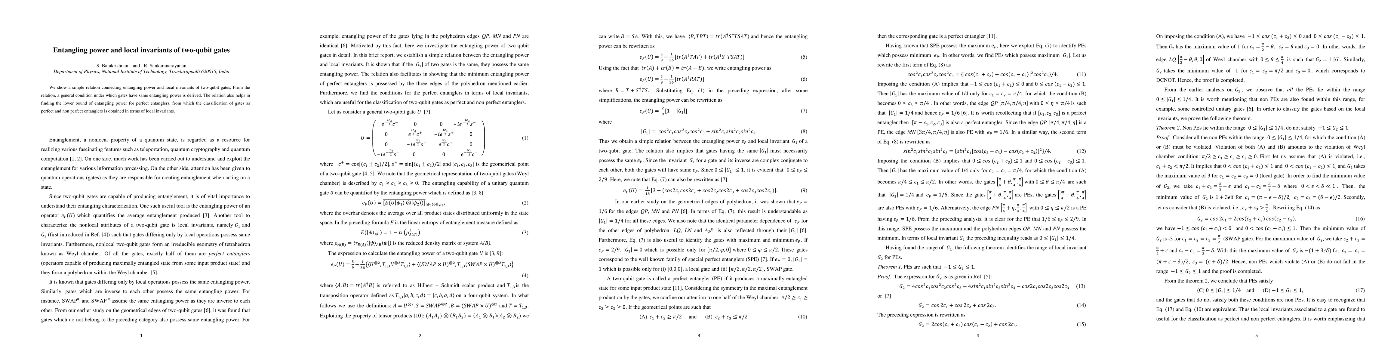 This paper establishes a connection between entangling power and local invariants of two-qubit gates, deriving a condition for gates to have the same entangling power and identifying the lower bound for perfect entanglers, thus classifying gates based on their local invariants.