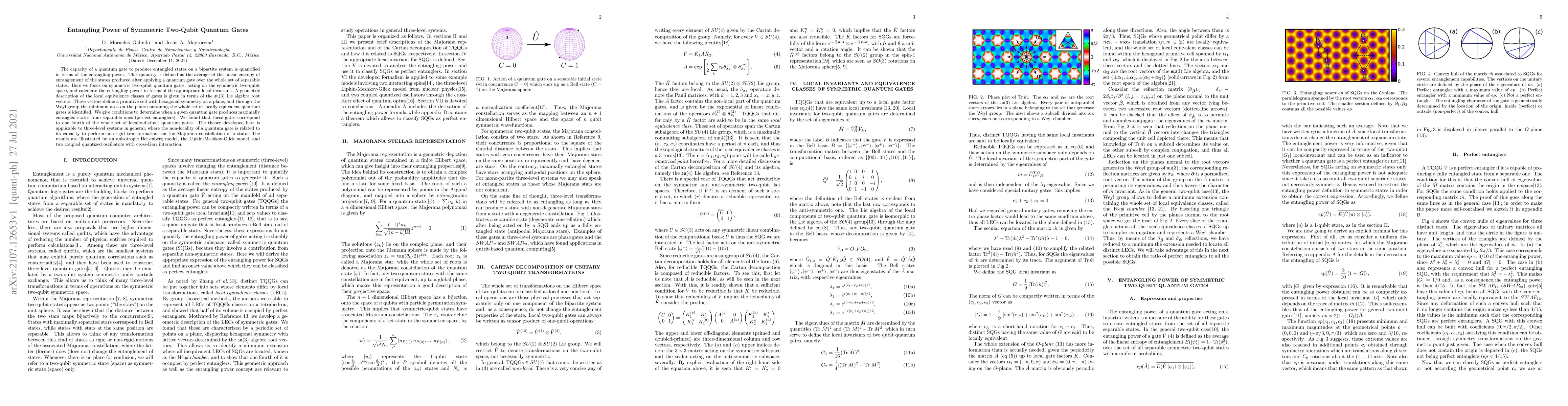 This paper quantifies the entangling power of symmetric two-qubit quantum gates, determining their ability to produce entangled states from separable ones. It identifies conditions for perfect entanglers, which constitute one fourth of all locally distinct gates, and applies the theory to three-level systems and specific models like the anisotropic Heisenberg model.