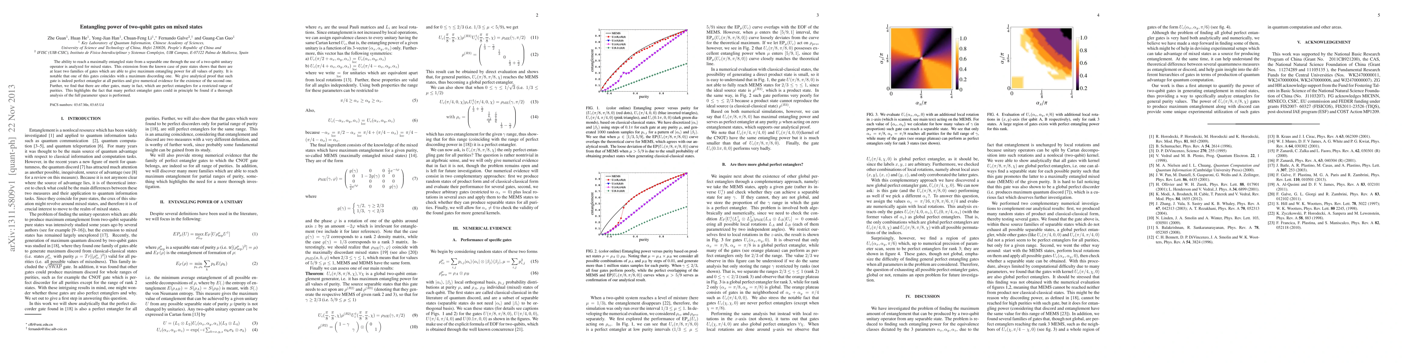 This paper investigates the entangling power of two-qubit gates on mixed quantum states, identifying at least two families of gates that achieve maximum entangling power across all purity levels. One gate is shown to be both a perfect entangler and discorder, while numerical evidence supports the existence of another. The study underscores the potential for discovering many more perfect entangler gates through comprehensive analysis.