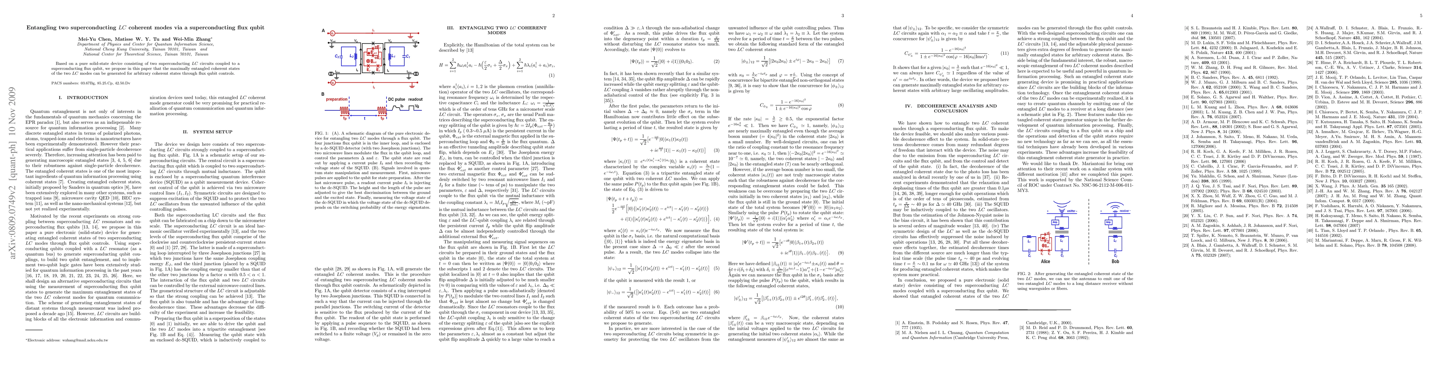 This paper proposes a method to generate maximally entangled coherent states between two superconducting LC circuits by coupling them via a superconducting flux qubit, enabling entanglement for arbitrary coherent states through qubit control.
