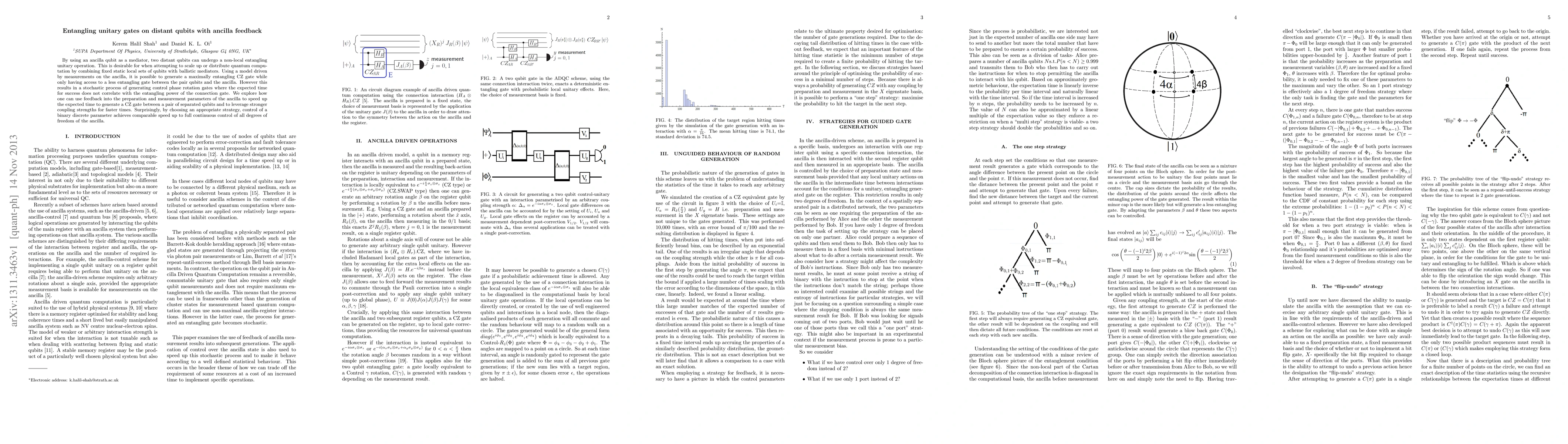 This paper explores using an ancilla qubit to entangle distant qubits via a non-local unitary operation, employing feedback to optimize the success rate and time for generating a CZ gate, finding that binary control can achieve similar speedups as full continuous control.