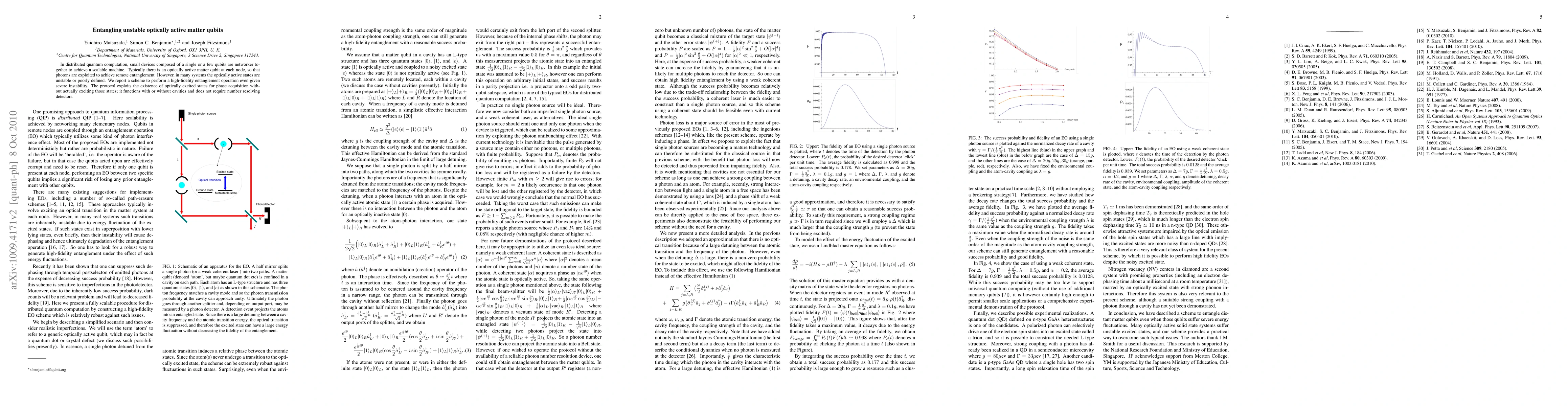In distributed quantum computation, small devices composed of a single or a few qubits are networker together to achieve a scalable machine. Typically there is an optically active matter qubit at each node, so that photons are exploited to achieve remote entanglement. However, in many systems the optically active states are unstable or poorly defined. We report a scheme to perform a high-fidelity entanglement operation even given severe instability. The protocol exploits the existence of optically excited states for phase acquisition without actually exciting those states; it functions with or without cavities and does not require number resolving detectors.
