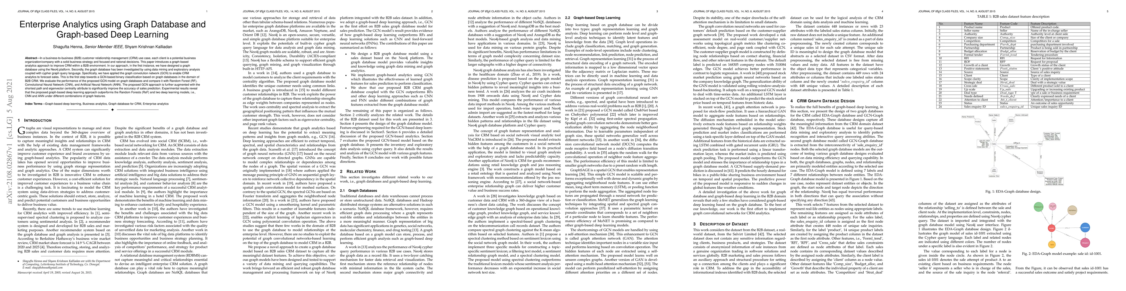 This paper proposes a graph-based deep learning approach using Graph Convolutional Networks (GCN) on a Neo4j graph database for B2B CRM analytics to forecast sales. The GCN model, enhanced with shortest path and eigenvector centrality, outperforms traditional Random Forest and deep learning models (CNN and ANN) in sales prediction accuracy.