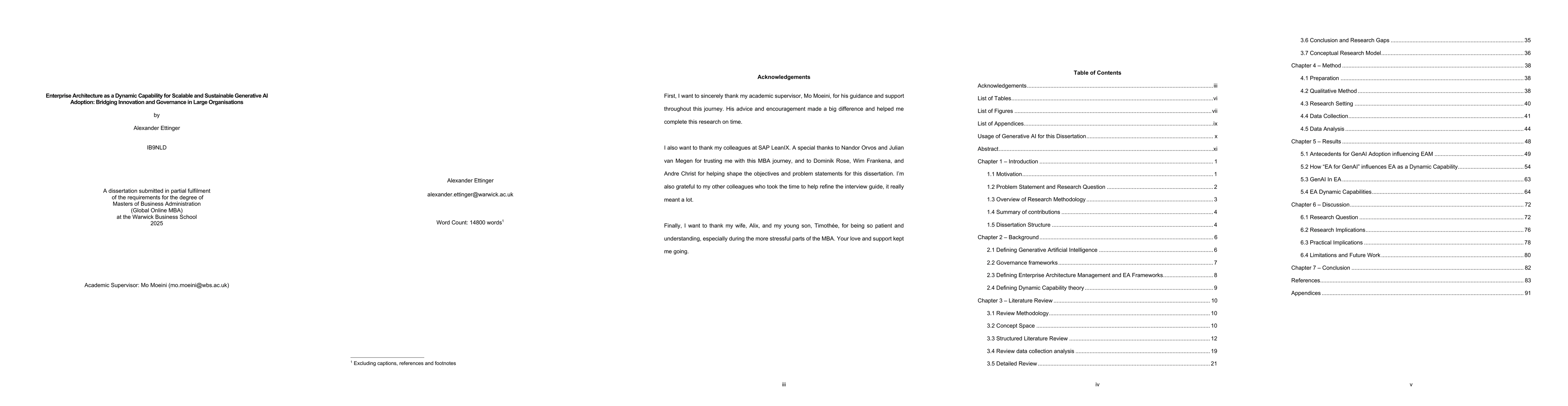 This research contributes to both academic understanding and industry practice by clarifying the role of EA in bridging innovation and governance in disruptive technology environments, particularly for GenAI adoption in large organizations.