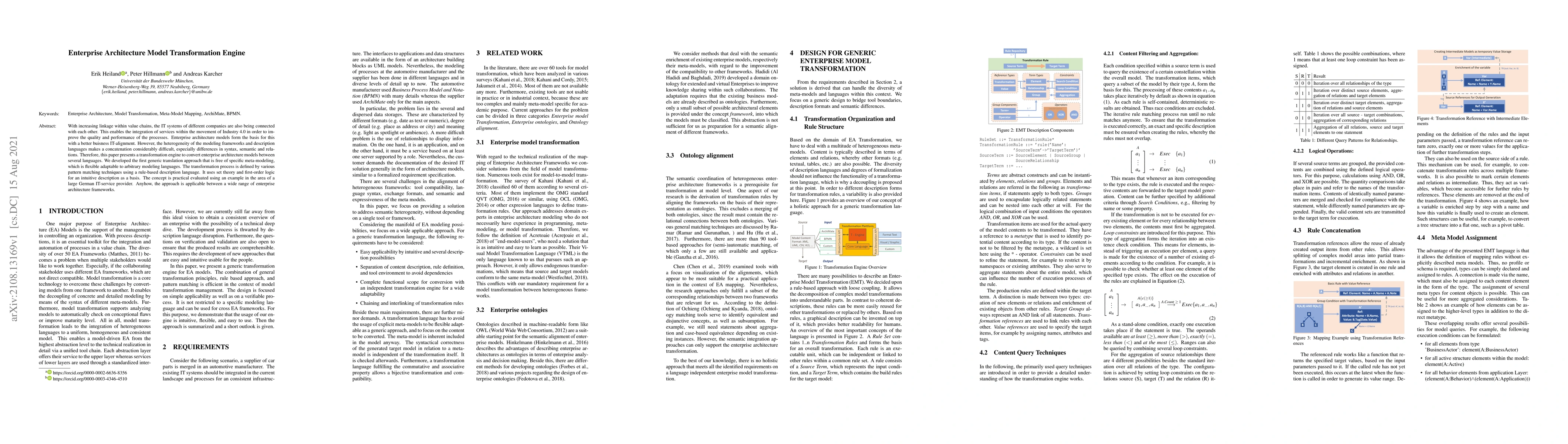 This paper introduces a transformation engine designed to convert enterprise architecture models across different languages, addressing the challenges posed by syntactic, semantic, and relational differences. The engine employs a flexible, generic translation approach based on pattern matching and rule-based description, evaluated through a practical application with a large German IT-service provider.