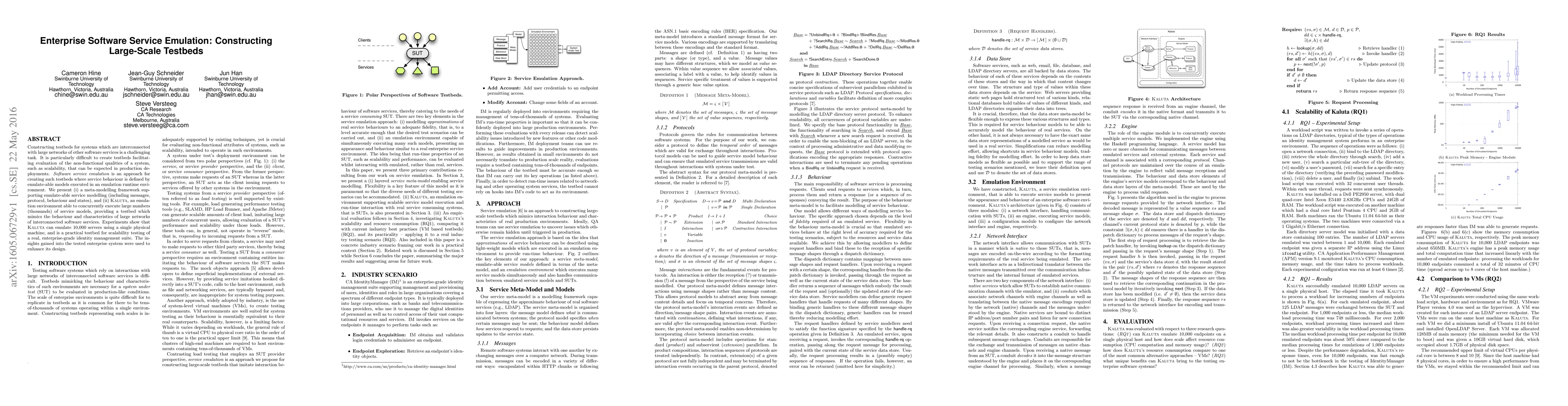 This paper presents a meta-modelling framework and an emulation environment, Kaluta, to construct large-scale testbeds for evaluating the non-functional qualities of enterprise software systems. Experiments demonstrate Kaluta's ability to emulate thousands of servers, providing a practical testbed for scalability testing and insights for system design enhancement.