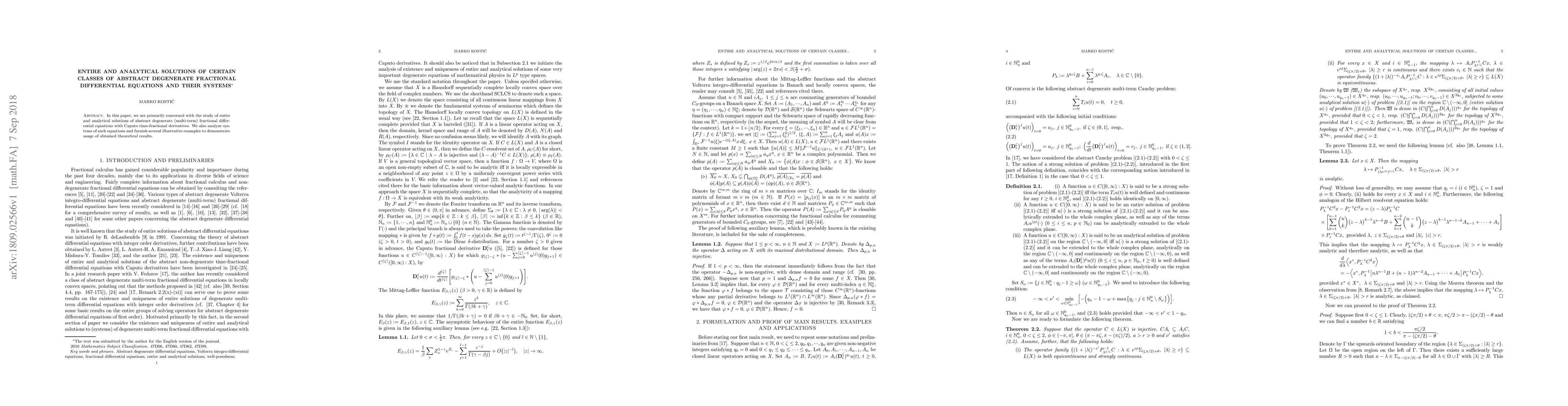 In this paper, we are primarily concerned with the study of entire and analytical solutions of abstract degenerate (multi-term) fractional differential equations with Caputo time-fractional derivatives. We also analyze systems of such equations and furnish several illustrative examples to demonstrate usage of obtained theoretical results.