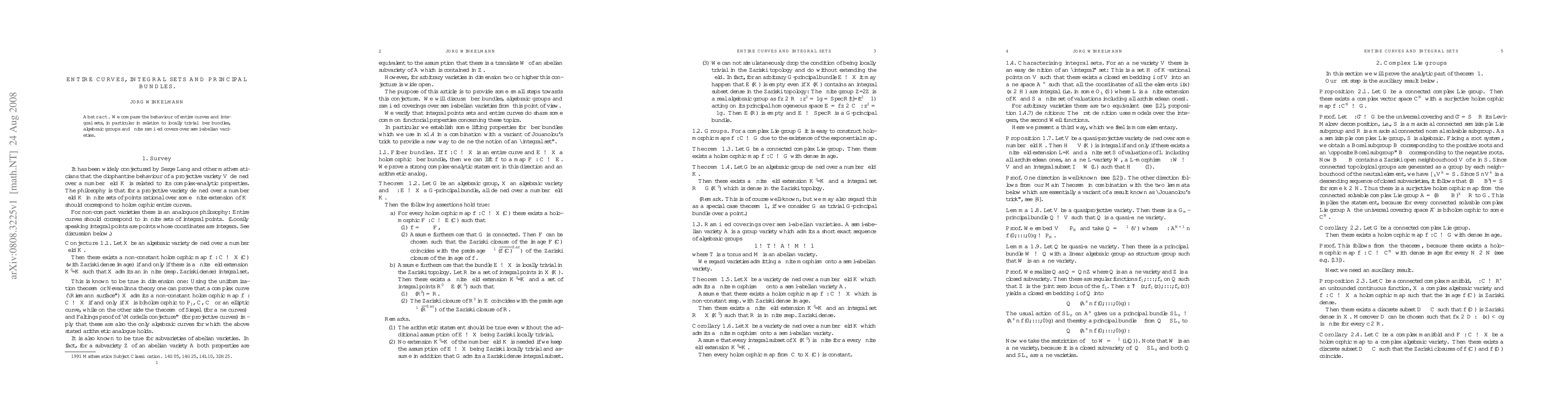 We compare the behaviour of entire curves and integral sets, in particular in relation to locally trivial fiber bundles, algebraic groups and finite ramified covers over semi-abelian varieties.
