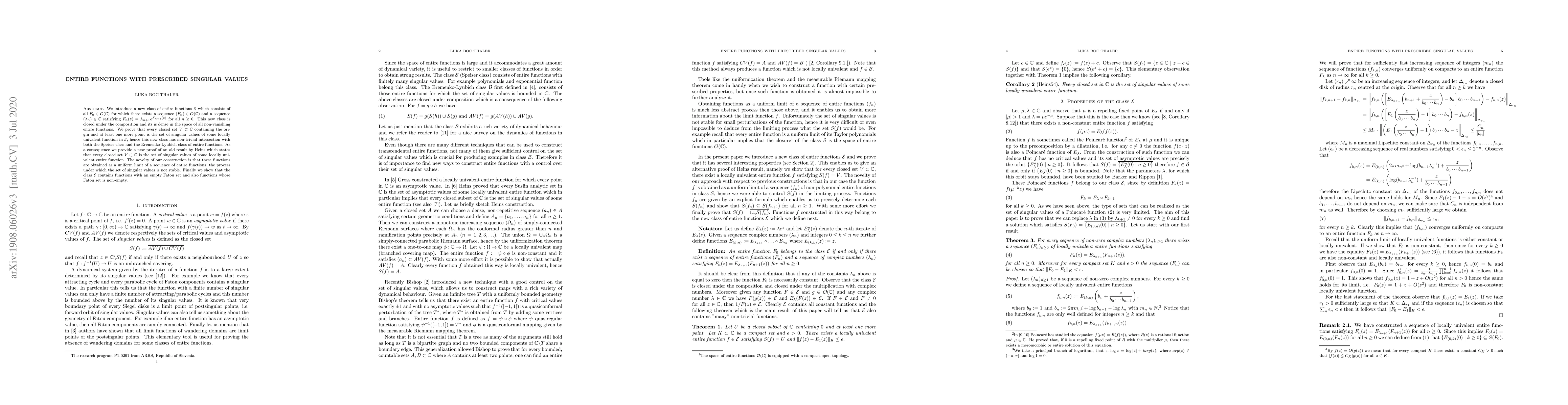 The paper presents a novel approach to constructing entire functions with prescribed singular values, extending previous results and providing a deeper understanding of the structure of such functions.