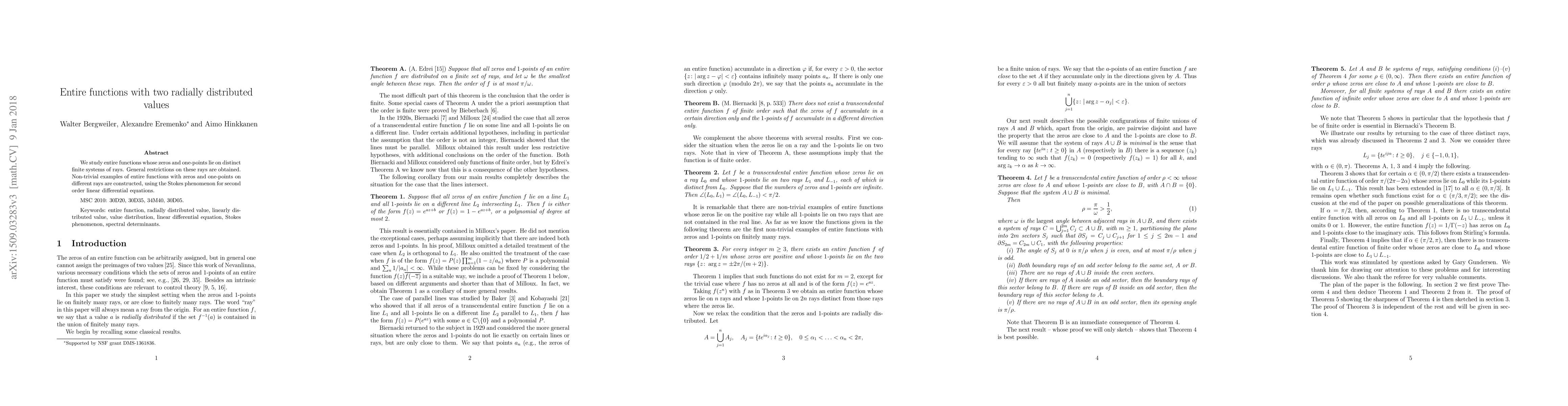 Researchers study entire functions with zeros and one-points on distinct finite systems of rays, finding general restrictions and constructing non-trivial examples using the Stokes phenomenon for second-order linear differential equations.