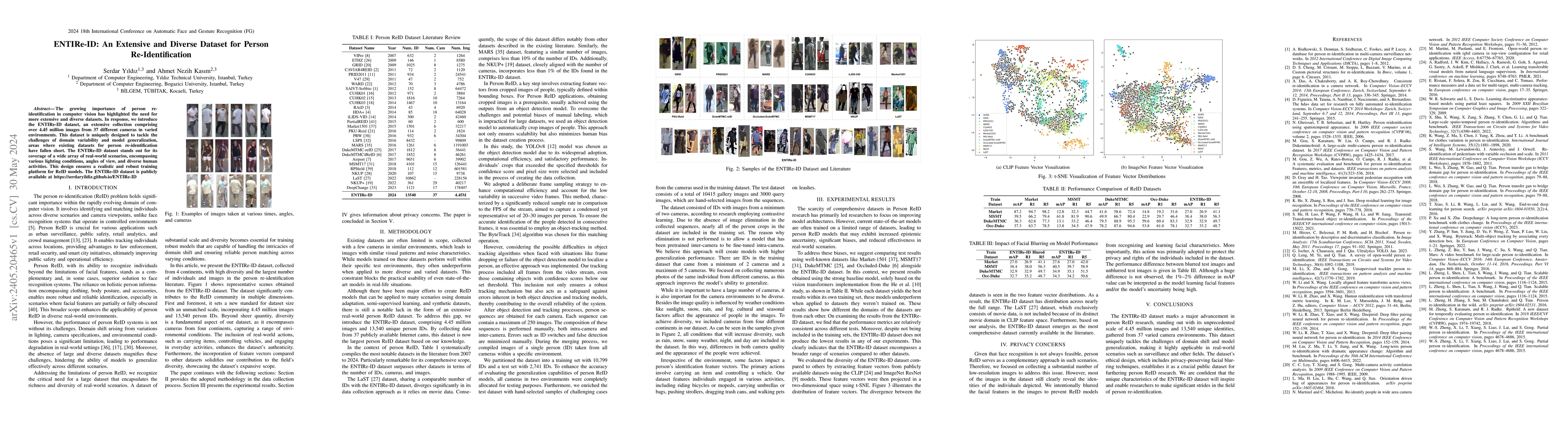 The ENTIRe-ID dataset provides an extensive collection of over 4.45 million images from 37 cameras, designed to address domain variability and model generalization in person re-identification, featuring diverse environments, lighting, and activities. It is publicly available to enhance the robustness of ReID models.