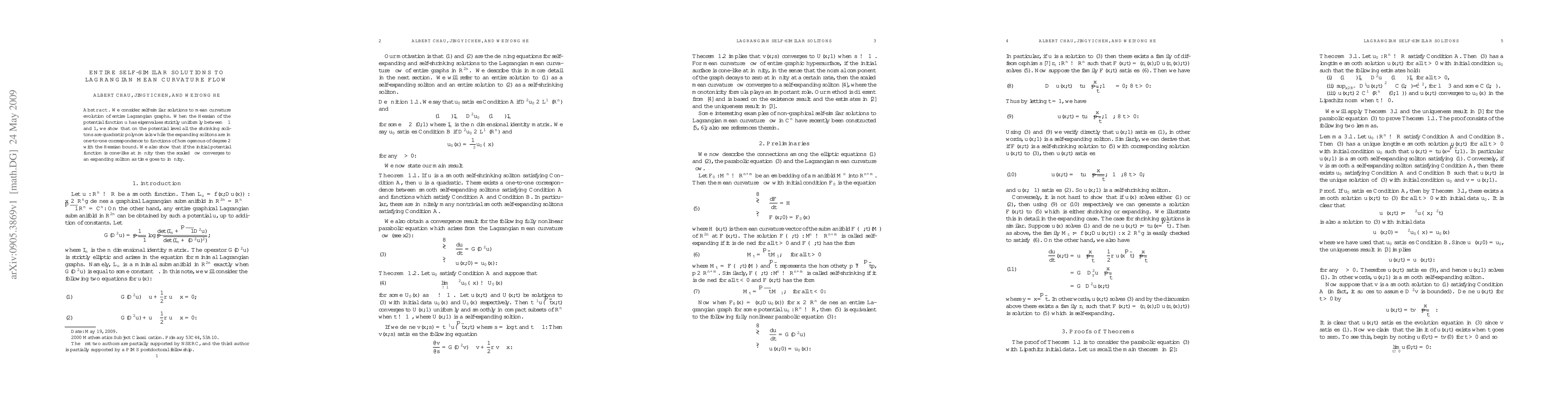 Summary: The research investigates self-similar solutions for Lagrangian Mean curvature flow in entire graphs, demonstrating that shrinking solitons are quadratic polynomials and expanding solitons correspond to degree 2 homogeneous functions, with the potential function converging to an expanding soliton if initially cone-like at infinity.