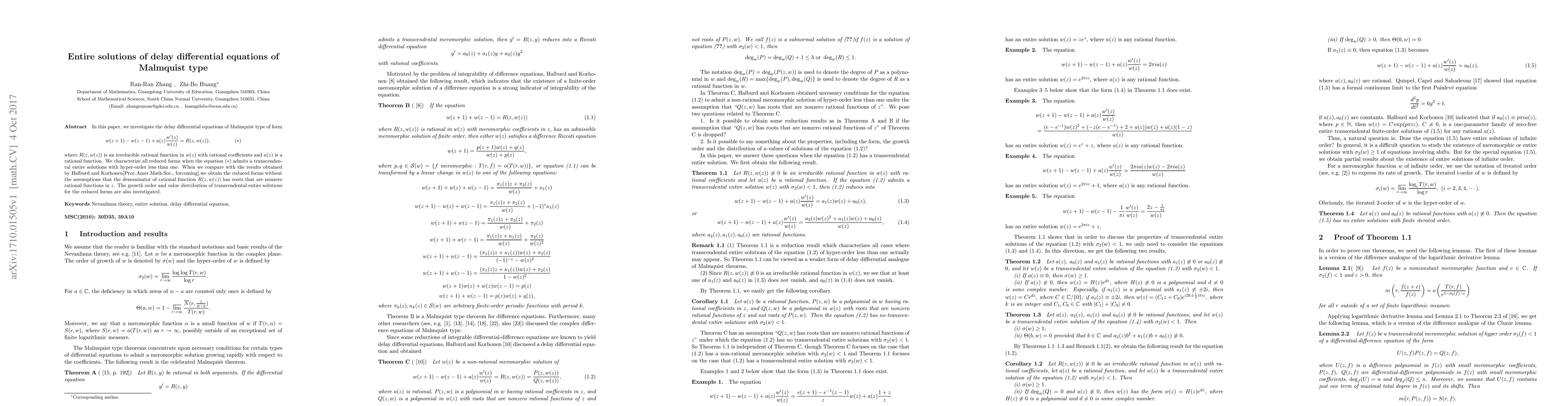In this paper, we investigate the delay differential equations of Malmquist type of form \begin{equation*} w(z+1)-w(z-1)+a(z)\frac{w'(z)}{w(z)}=R(z, w(z)),~~~~~~~~~~~~~~(*) \end{equation*} where $R(z, w(z))$ is an irreducible rational function in $w(z)$ with rational coefficients and $a(z)$ is a rational function. We characterize all reduced forms when the equation $(*)$ admits a transcendental entire solutions with hyper-order less than one. When we compare with the results obtained by Halburd and Korhonen[Proc.Amer.Math.Soc., forcoming],we obtain the reduced forms without the assumptions that the denominator of rational function $R(z,w(z))$ has roots that are nonzero rational functions in $z$. The growth order and value distribution of transcendental entire solutions for the reduced forms are also investigated.
