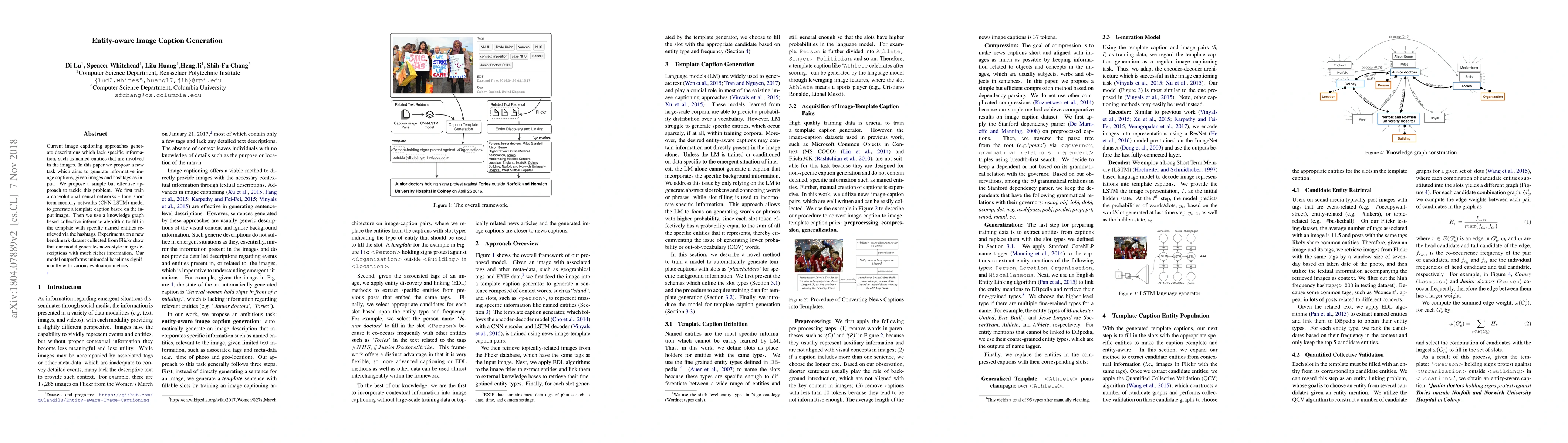 A new approach to image caption generation focuses on incorporating named entities into descriptions using a combination of CNN-LSTM networks and knowledge graph-based collective inference algorithms.