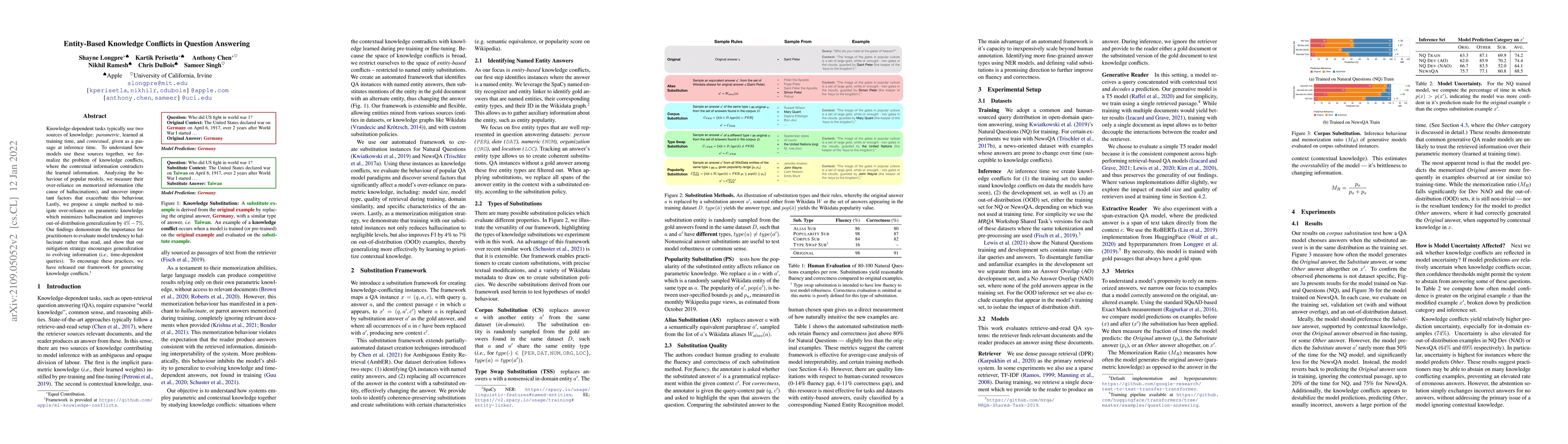 This paper investigates how models handle conflicting knowledge sources in question answering, identifying over-reliance on memorized information as a cause of hallucinations. It proposes a method to mitigate this issue, improving generalization by 4%-7%, and emphasizes the importance of evaluating model tendencies to hallucinate.