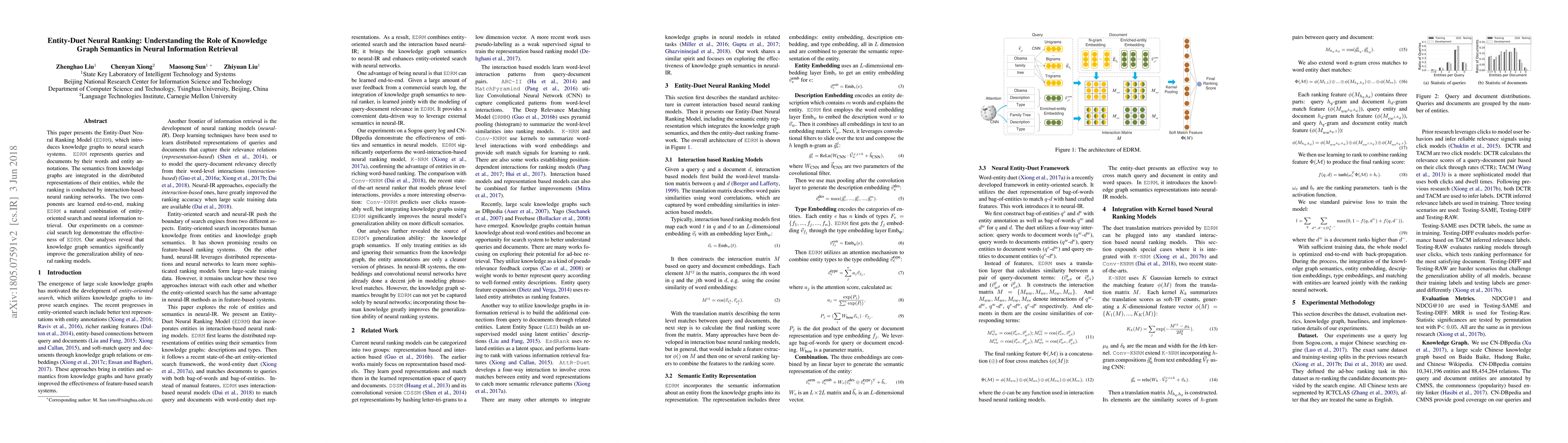 This paper introduces the Entity-Duet Neural Ranking Model (EDRM), which integrates knowledge graphs into neural search systems to enhance semantic understanding. EDRM combines entity annotations and neural ranking networks, showing improved generalization and performance in commercial search logs.
