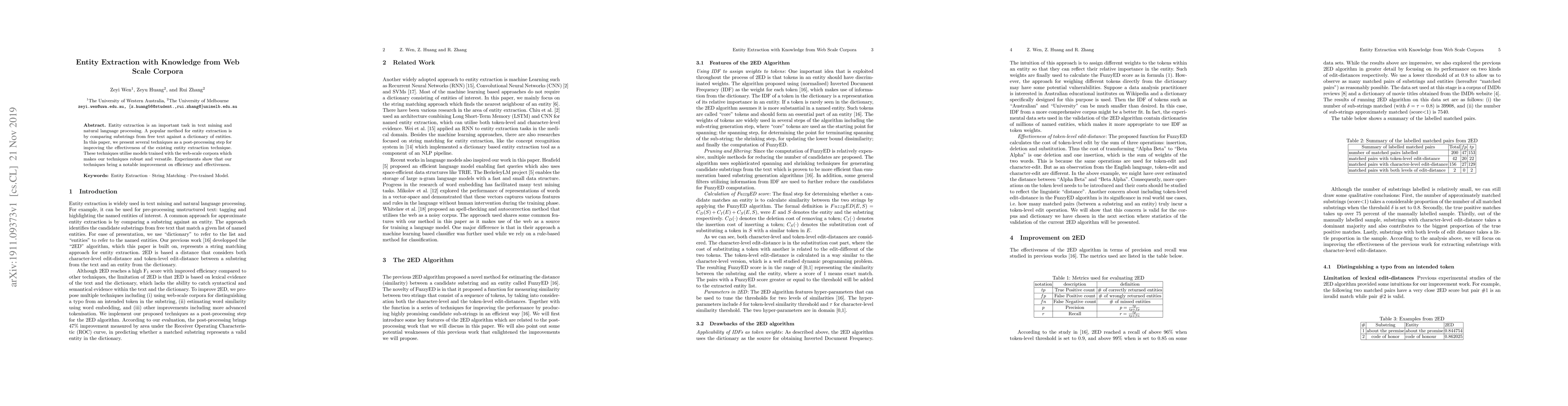 This paper introduces advanced post-processing techniques for entity extraction, leveraging models trained on web-scale corpora to enhance the method's robustness and versatility, resulting in improved efficiency and effectiveness as demonstrated by experiments.