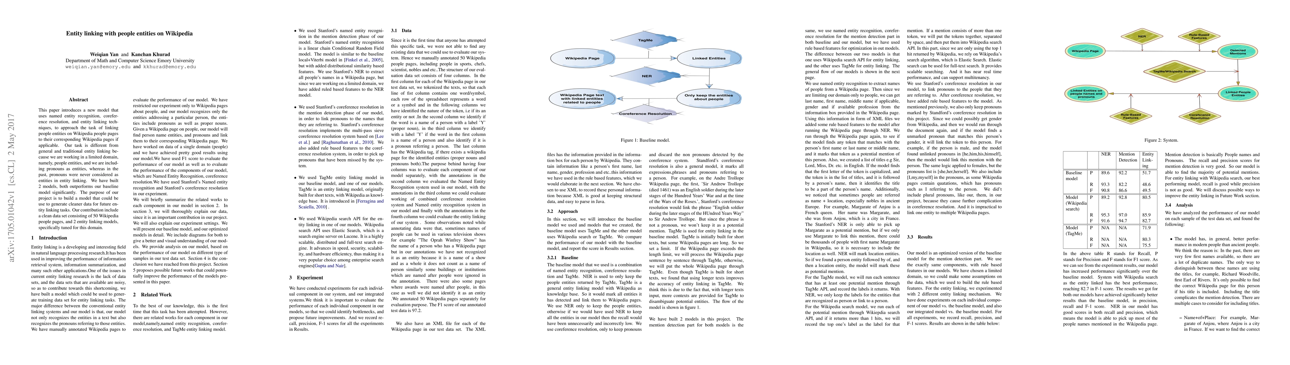 This paper presents two advanced models for linking people entities on Wikipedia to their respective pages, incorporating named entity recognition, coreference resolution, and entity linking, with a focus on including pronouns as entities. The proposed models significantly outperform baselines and aim to generate cleaner data for future entity linking tasks.