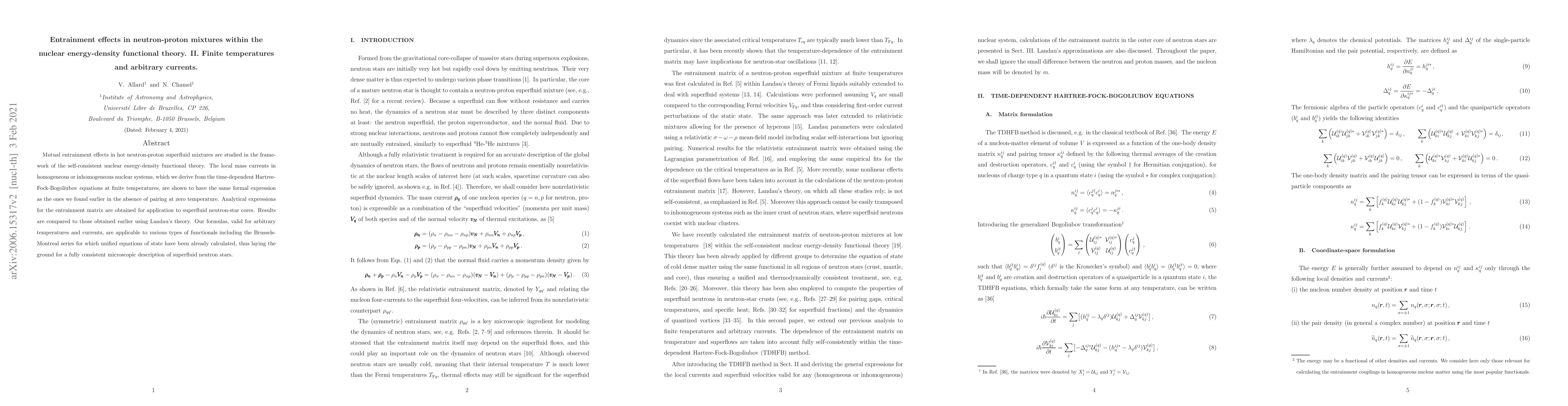 Researchers studied entrainment effects in neutron-proton mixtures at finite temperatures using nuclear energy-density functional theory, finding that local mass currents have the same formal expression as earlier results.