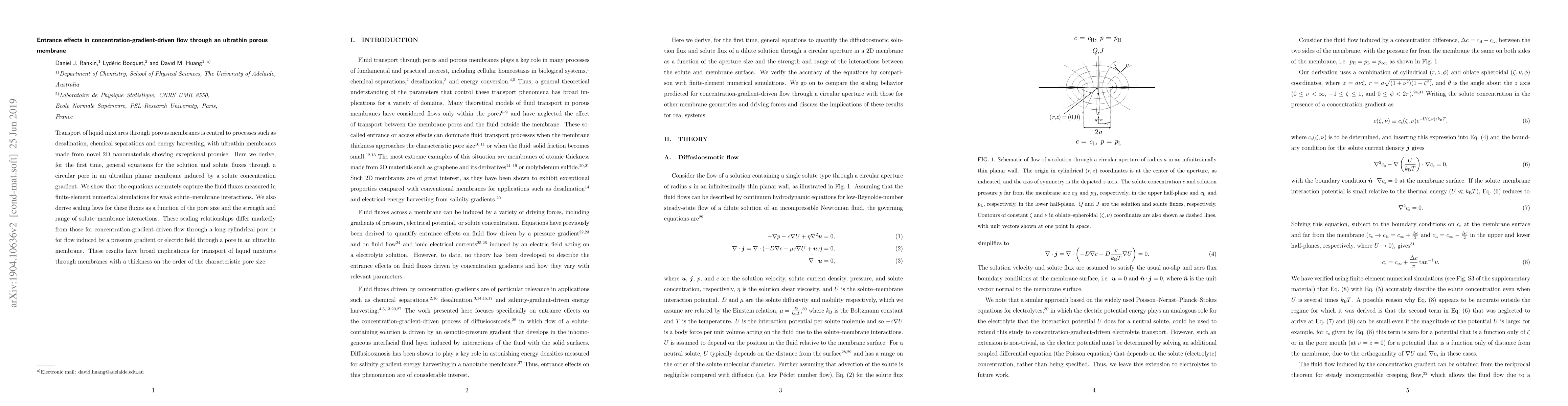This paper derives equations for liquid mixture transport through ultrathin porous membranes driven by concentration gradients, showing distinct scaling laws for circular pores compared to cylindrical pores or pressure/electric field-driven flows. The findings have significant implications for processes like desalination and chemical separations.