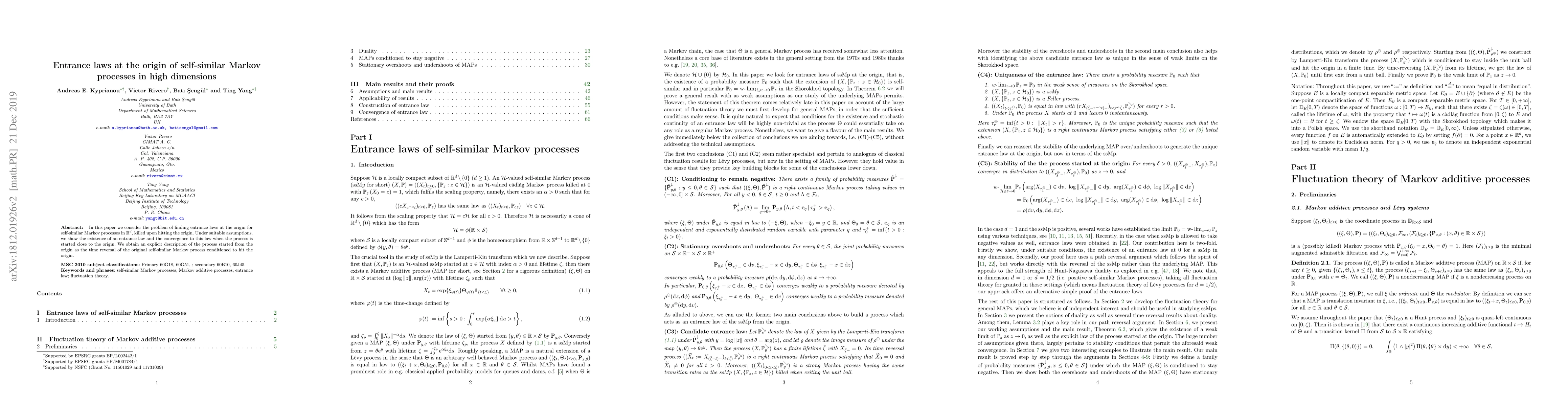 This paper investigates entrance laws at the origin for self-similar Markov processes in high dimensions, demonstrating their existence and convergence under mild assumptions. It provides an explicit description of the process initiated from the origin as the time-reversed version of the original process conditioned to reach the origin.