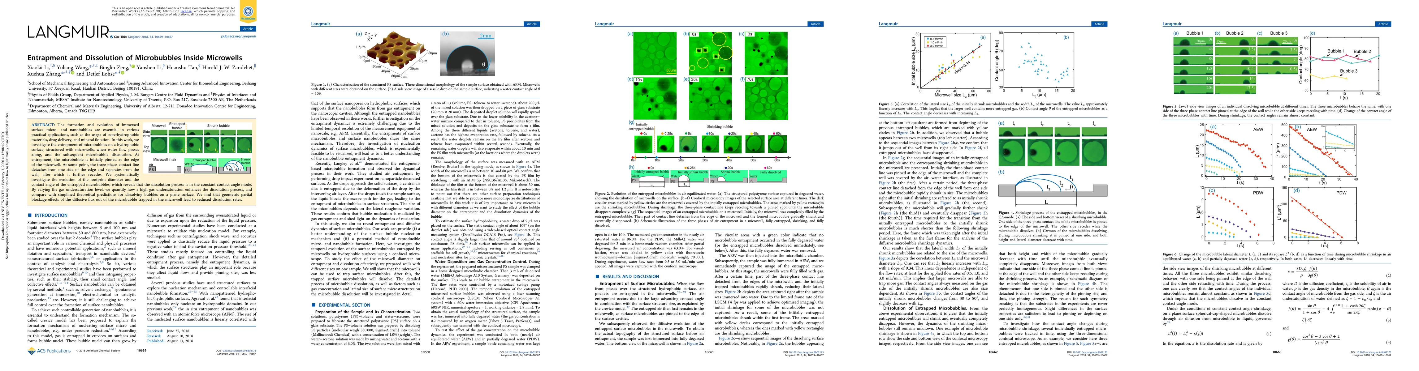 This study investigates the entrapment of microbubbles in microwells on hydrophobic surfaces and their subsequent dissolution under water flow. The research reveals that microbubbles initially pin at microwell edges and dissolve in a constant contact angle mode, with higher gas undersaturation accelerating the process, though geometric effects reduce dissolution rates.