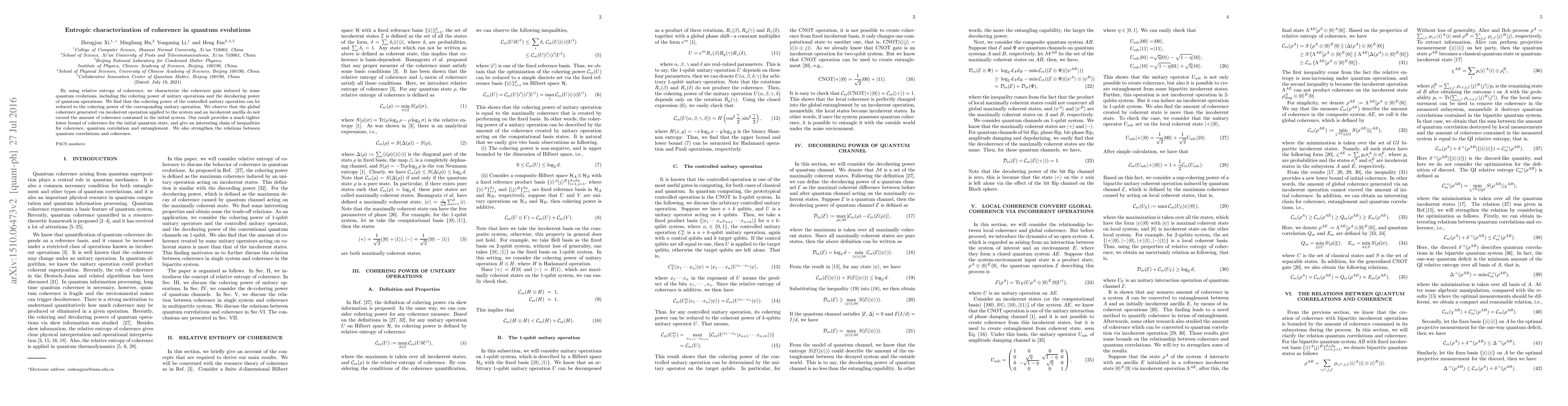 This paper characterizes coherence in quantum evolutions using relative entropy, revealing that controlled unitary operations have reduced cohering power compared to their corresponding unitary operations. It also shows that incoherent operations on a system and an ancilla do not increase the system's coherence beyond its initial amount, providing tighter lower bounds and new inequalities linking coherence, quantum correlations, and entanglement.